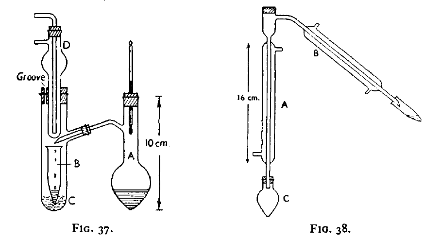 ثلاثة دوارق دائرية – سدادات من الفلين-دورق مخروطي - حامل -سخان- مكثف – ترموتر- ثلاثة أعمده زجاجية مختلفة الأطوال-عمود ذو انتفاخ -حبيبات من الزجاج أو الألمنيوم – توصيلات زجاجية- حجر غليان – خليط من الماء والأسيتون