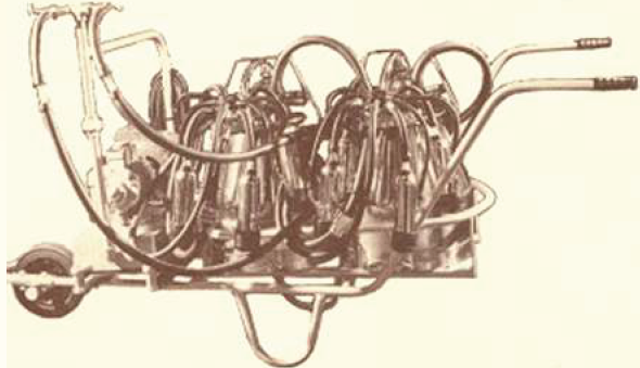 صورة توضح آلة ( وحدة ) حلب متنقلة تستخدم في المزارع الصغيرة