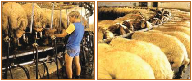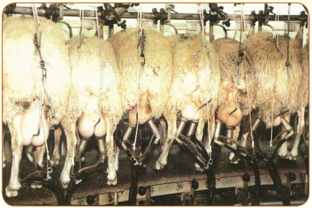 يجب تخصيص اماكن نظيفة لحلب الاغنام فيها، نظرا لأهمية هذه العملية، وعادة ما تتم هذه العملية اما يدويا او آليا، ويتم الحلب مرة او مرتين في اليوم حسب الموسم ووضع الاغنام، ويجب تهيئة الحيوان للحلب باتباع الخطوات التالية: