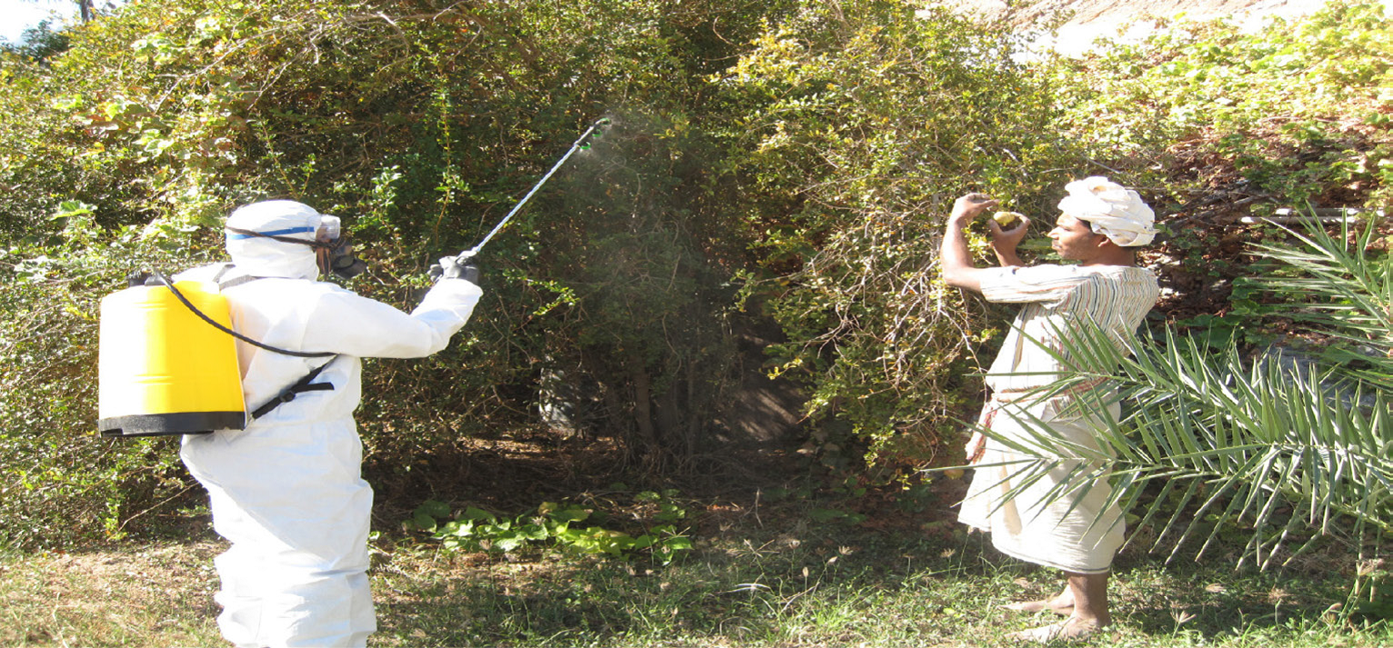 2. يلاحظ أن العديد من المزارعين لا يلبسون الملابس الواقية والمطلوبة عند قيامهم بعمليات المكافحة مما ينتج عن ذلك حدوث تسمم مباشر لهم ولذا فإنه من الأهمية بمكان ارتداء مستخدمي المبيدات الملابس الموصى بها.
