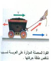 سنأخذ حالة عمومية كالموقف المبين بالشكل 1)) الذي يمثل عربة كتلتها m تتحرك في الاتجاه الموجب للمحور x تحت تأثير قوانين. لنرمز إلى القوة المحصلة المؤثرة على العربة بالرمز Fnet وحيث أن الحركة في اتجاه المحور x فإن العلاقة Fnet= ma تصبح :