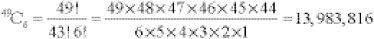 In the UK National Lottery the rules require a selection of 6 numbers from a possible 49 – how many possibilities are there?