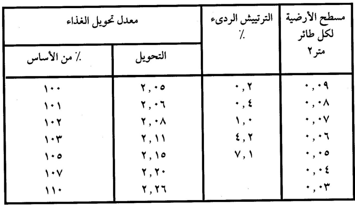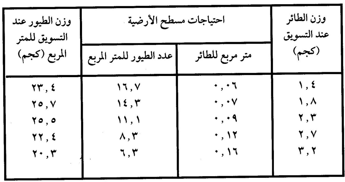 المصدر: د. محمد سعيد محمد سامي.2000. انتاج دجاج اللحم للمشاريع الصغيرة والكبيرة.