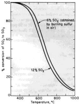تبين معلومات تحويل التوازن في الصورة 1-3 ان تحويل ثاني اكسيد الكبريت يقلل من ارتفاع درجة الحرارة . ولهذا السبب ، مصبح من المرغوب فيه اجراء التفاعل عند ادنى درجة حرارية يمكن استخدامها .