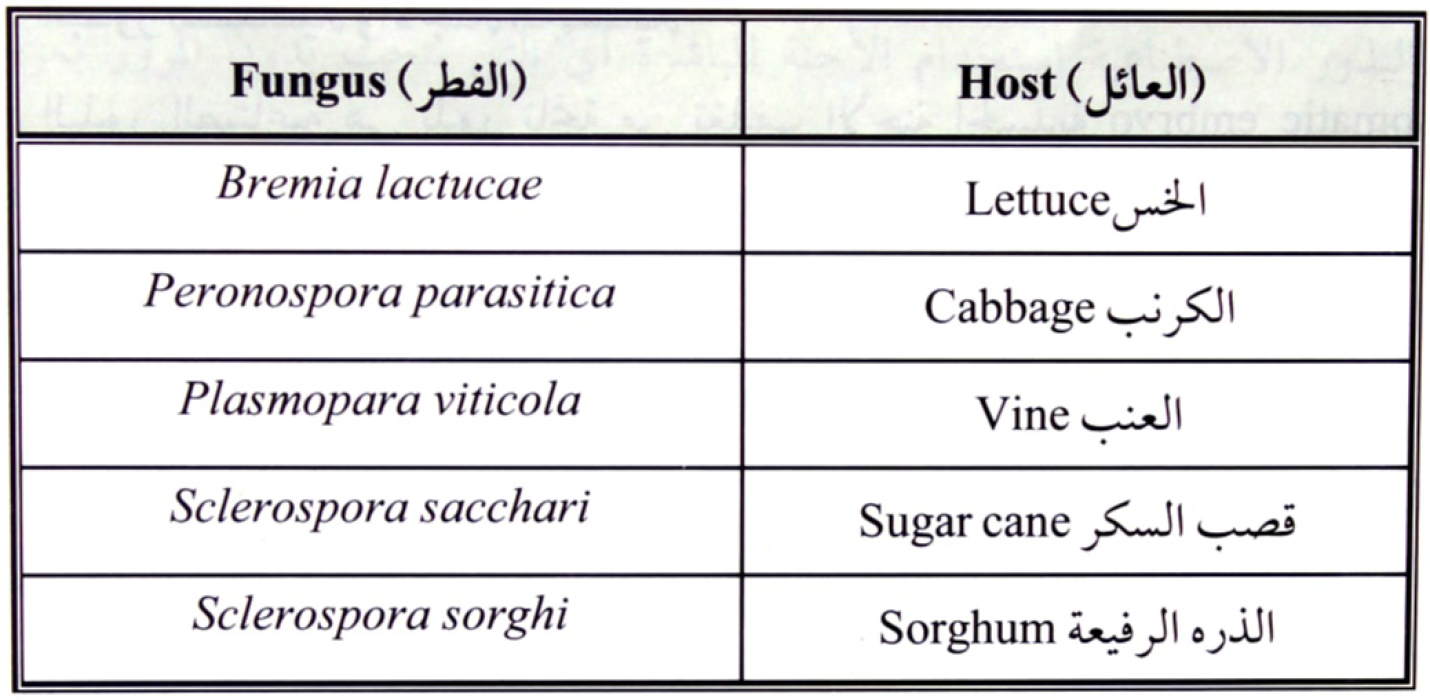 جدول يوضح الفطريات التي أمكن إنماؤها بنجاح في العوائل النباتية (1980,Ingram)