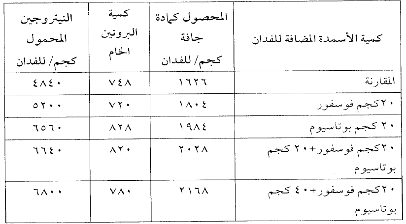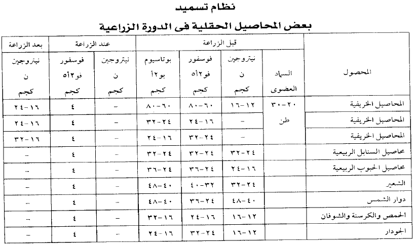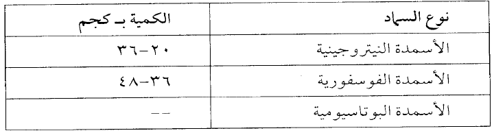 ولكي يستطيع النبات الاستفادة من النيتروجين الجوي يجب عدم اضافة كمية كبيرة من اسمدة النيتروجين، وعلى ذلك تكون كمية الاسمدة التي تضاف الى الفدان هي كما يلي: