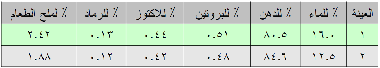 مثال لتركيب كيماوي لعينتين زبد مملح: