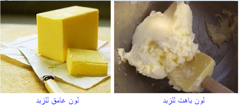 * اللون الباهت : للإفراط في غسل الزبد مع قلة تركيز الأناتو المستعمل .