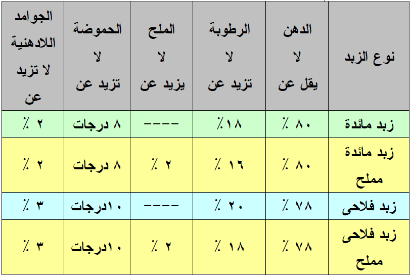 ١١ - يتراوح رقم ريخرت بين ٢٢-٣٧ للزبد الجاموسى، ٢٢-٣٣ للزبد البقري يتراوح رقم بولنسكى بين ١.٥-٣.٥ للنوعين.