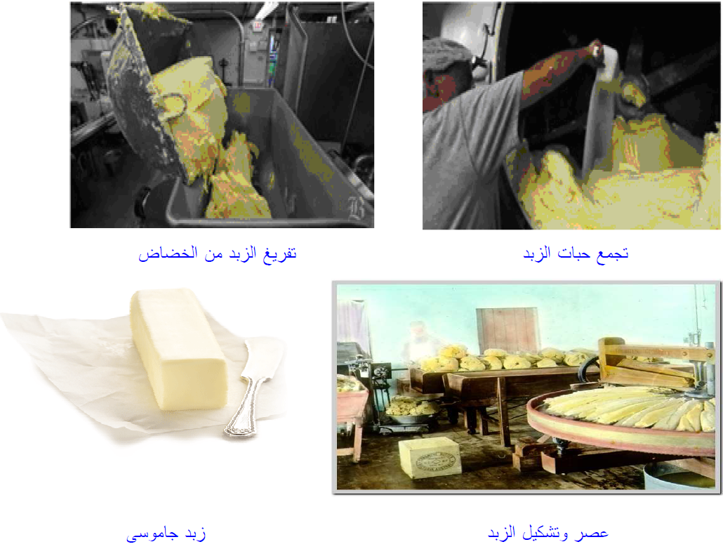 ٣- عدم العصر الجيد يزيد من الرطوبة وهو ما نلاحظه في الزبد الفلاحي والذي يمكن كشفه بتقدير نسبة الرطوبة أو الجوامد الكلية.