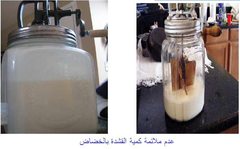 - ارتفاع درجة حرارة القشدة عن المطلوب لنجاح الخض.