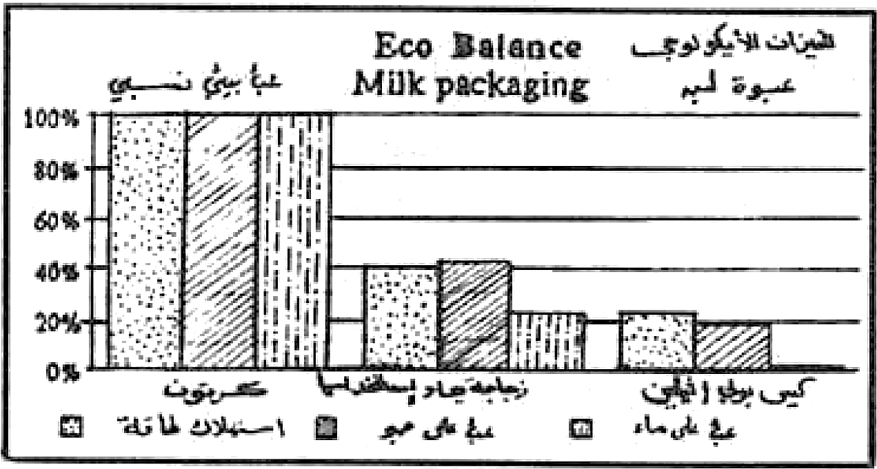 نموذج للميزان الايكولوجي لعبوة لبن سعة لتر مصنعه من الكرتون او البولي اثيلين او الزجاج.