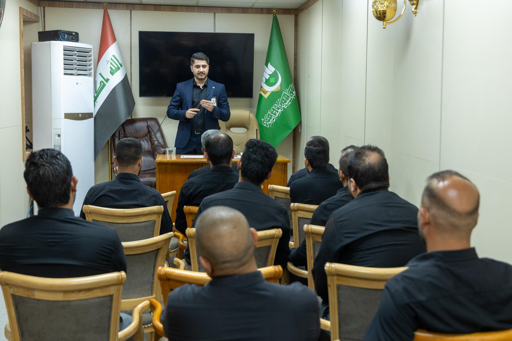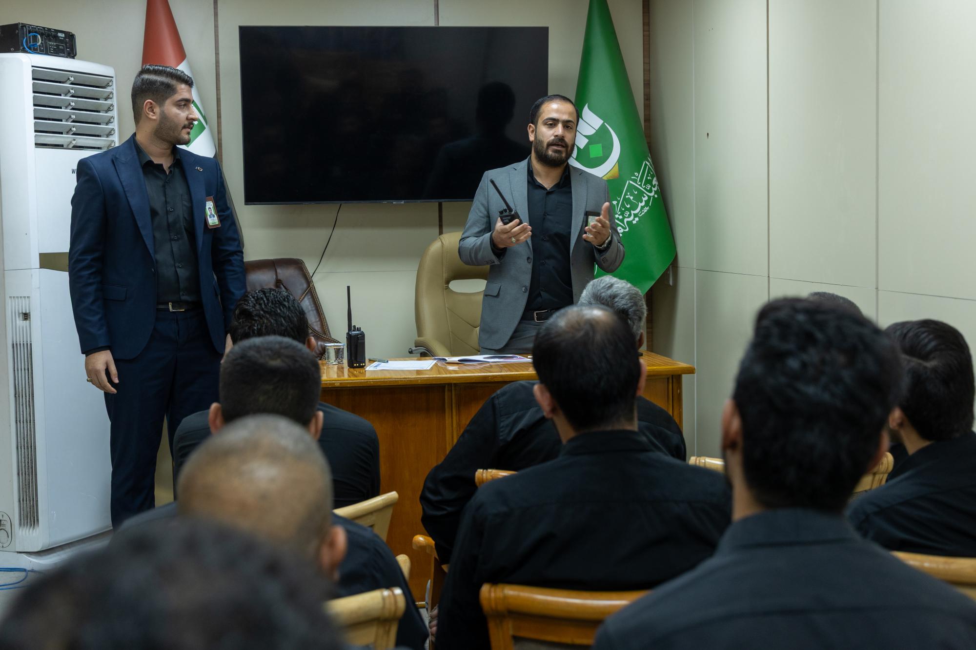 أقام قسم حفظ النظام في العتبة العباسية المقدسة، دورة تطويرية لعدد من ملاكاته. وقال رئيس القسم السيد حسين الشهرستاني: إنَّ "شعبة المتابعة الأمنية في القسم نظمت هذه الدورة التطويرية التي تضمنت التدريب على استعمال جهاز النداء اللاسلكي، وتوضيح المصطلحات الأمنية المعتمدة في الإرسال والاستلام". وأضاف أنَّ "محاضر الدورة بين أهمية النداء في عمل القسم، وما يتطلبه من دقة عالية وسرعة في الاستجابة والتنفيذ، إلى جانب توضيح كيفية استعمال الجهاز والحفاظ عليه من التلف أو الفقدان". وتأتي هذه الدورة ضمن سلسلة الدورات التطويرية التي ينظمها قسم حفظ النظام لملاكاته العاملة، بهدف ضمان أداء واجباتهم بالشكل الأمثل.