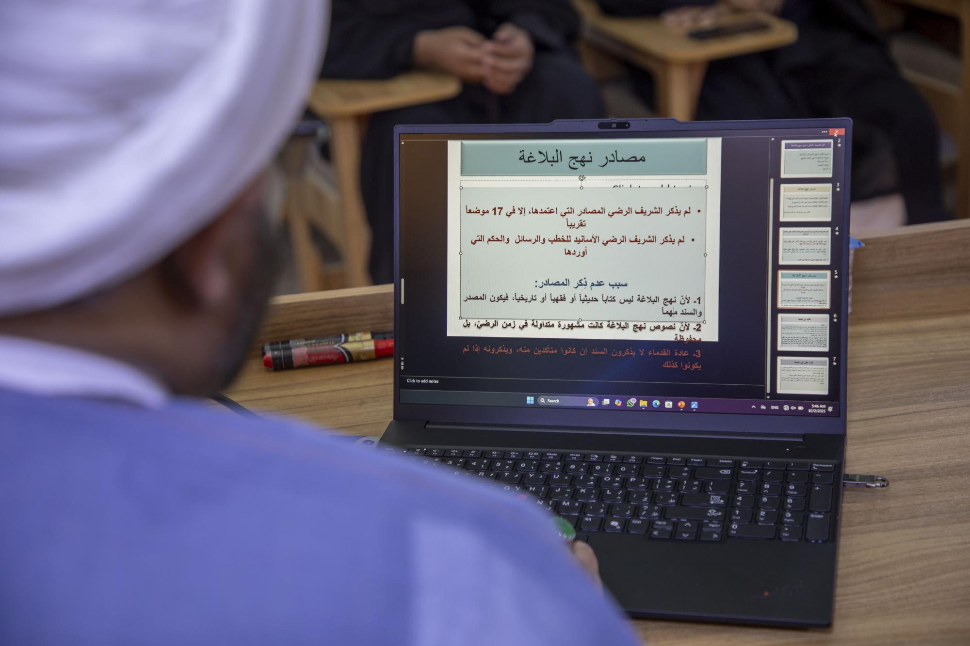 قدّمت دارُ علوم نهج البلاغة في العتبة العبّاسية المقدّسة، المحاضرة الثالثة ضمن الدورة التخصّصية الأولى لصناعة الخطاب. وألقى المحاضرة الشيخ أركان التميمي، إذ كانت تهدف إلى تأهيل الخطباء وتطوير أدواتهم الفكريّة والبلاغيّة، بالاستناد إلى تراث الإمام علي(عليه السلام). وقال الشيخ التميمي، إن "المحاضرة، وكما في سابقاتها، انقسمت إلى جانبٍ نظريّ وآخر عمليّ، حرصًا على خلق توازنٍ معرفي وتطبيقي بين المفاهيم والخبرة الميدانية". وأضاف أن "الجانب النظري، تناول الشبهات المثارة حول نهج البلاغة"، مشيرًا إلى أن "مسار التشكيك في الكتاب بدأ مع ابن خلكان (ت. 681هـ)، ثمّ توالت الآراء المشكّكة التي طعنت في أسانيده ومصادره". وبيّن أن "هذه الشبهات قديمة وحديثة في آنٍ واحد، وقد تصدّى لها كبار العلماء والمحقّقين من خلال مؤلّفاتهم ومصادرهم التوثيقية، التي تثبت أصالة النهج ومصداقيته".