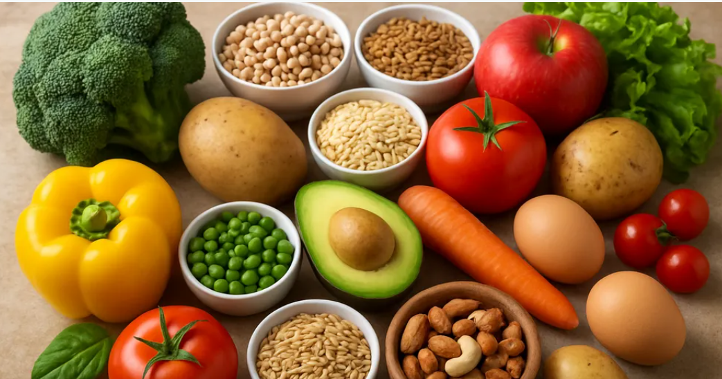 ويتكون هذا النظام الغذائي في الغالب من الحبوب الكاملة، والفواكه، والخضراوات، والمكسرات، والبقوليات مثل العدس والفاصوليا، مع كميات معتدلة أو صغيرة فقط من الأسماك ومنتجات الألبان واللحوم.