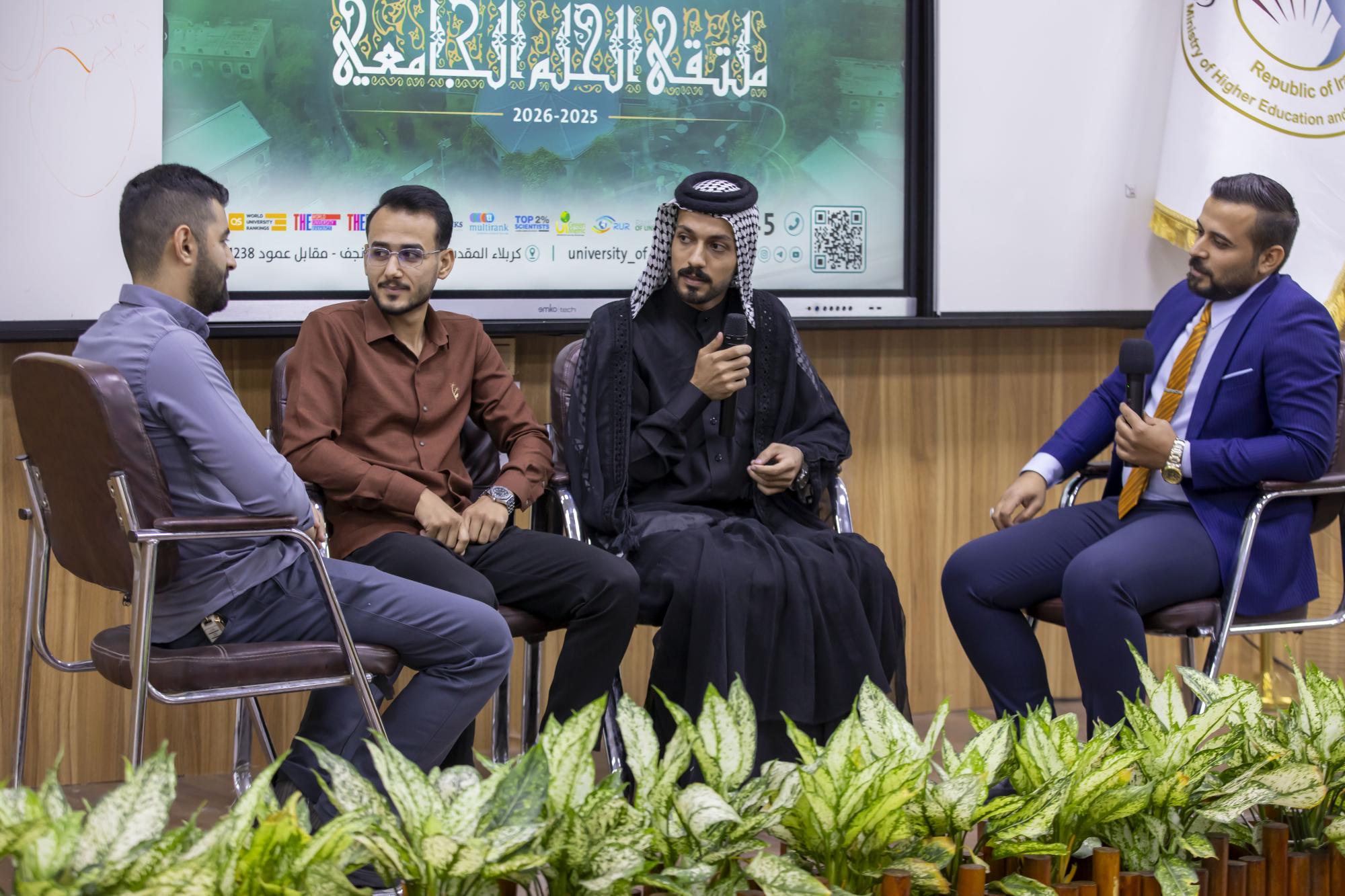 أقامت جامعة العميد، ملتقى الحلم الجامعي للطلبة الخريجين من مرحلة السادس الإعدادي؛ لتعريفهم بالتخصصات الجامعية وفرصهم المستقبلية في التعليم الأكاديمي. وقال المعاون الإداري لعميد كلية الصيدلة في الجامعة، الدكتور حسن ذو الفقار: إنّ "جامعة العميد أقامت ملتقى الحلم الجامعي لخريجي مرحلة السادس الإعدادي؛ من أجل اطلاعهم على أقسام الجامعة ومختبراتها، بالإضافة إلى المشاريع التي تنظمها الجامعة لطلبتها". واستُهلت فعاليات الملتقى بتلاوة مباركة من الذكر الحكيم، أعقبتها كلمة لمساعد رئيس الجامعة للشؤون الإدارية والقانونية الدكتور مشتاق كريم، أكد فيها أنّ جامعة العميد حاضنة للإبداع والتميز، ووجهة للطلبة الباحثين عن بيئة تعليمية متكاملة تنمّي مهاراتهم وتصقل قدراتهم العلمية والعملية. وتضمّن الملتقى عرضًا مسرحيًّا تفاعليًّا قدّمه طلبة الجامعة، استعرض طريقة اختيار التخصص الجامعي الأنسب، إلى جانب محاضرات توعوية وثقافية وعلمية، وتكريم عدد من الأساتذة الذين تميّز طلبتهم بتحقيق أعلى الدرجات، فضلًا عن تنظيم مسابقات وتوزيع جوائز تفاعلية للمشاركين.