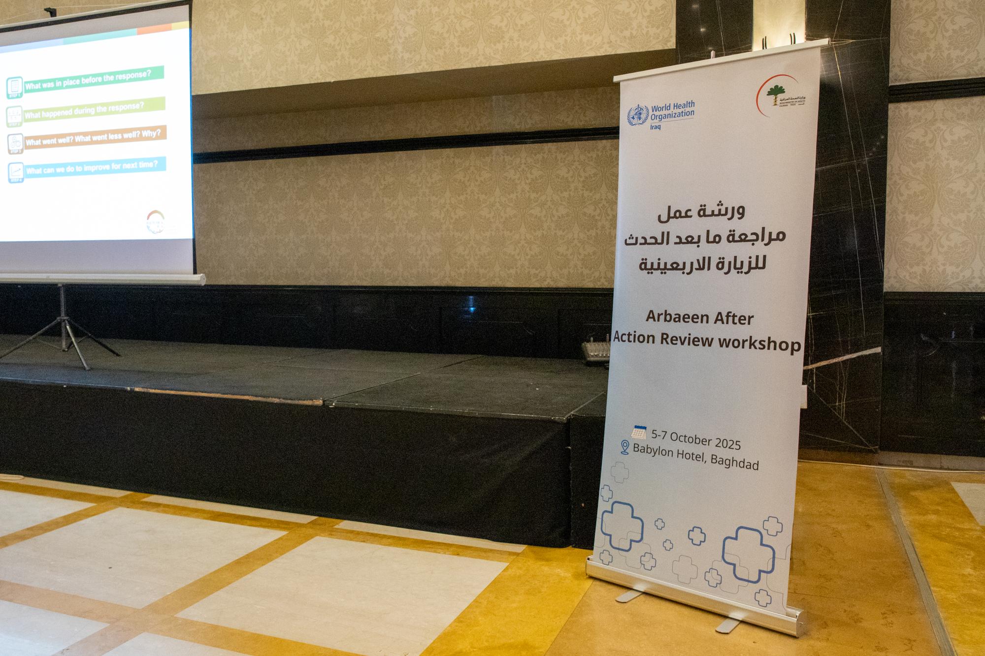 شارك قسم الشؤون الطبية في العتبة العباسية المقدسة بورشة عمل لتقييم الأداء الصحي في زيارة الأربعين لهذا العام. ونظّمت الورشة بالتنسيق بين وزارة الصحة ومنظمة الصحة العالمية، وتحت عنوان (ما بعد الحدث للمحاكاة) في العاصمة بغداد. وقالت رئيسة القسم الدكتورة هيفاء التميمي: إنّ "الورشة جاءت لمراجعة الأداء الصحي وتقييمه في زيارة الأربعين لهذا العام" لافتة إلى أنّ "الخطط الصحية والطبية واللوجستية التي أعدّتها العتبة العباسية المقدسة أثبتت نجاحها في الميدان خلال الزيارة المليونية".