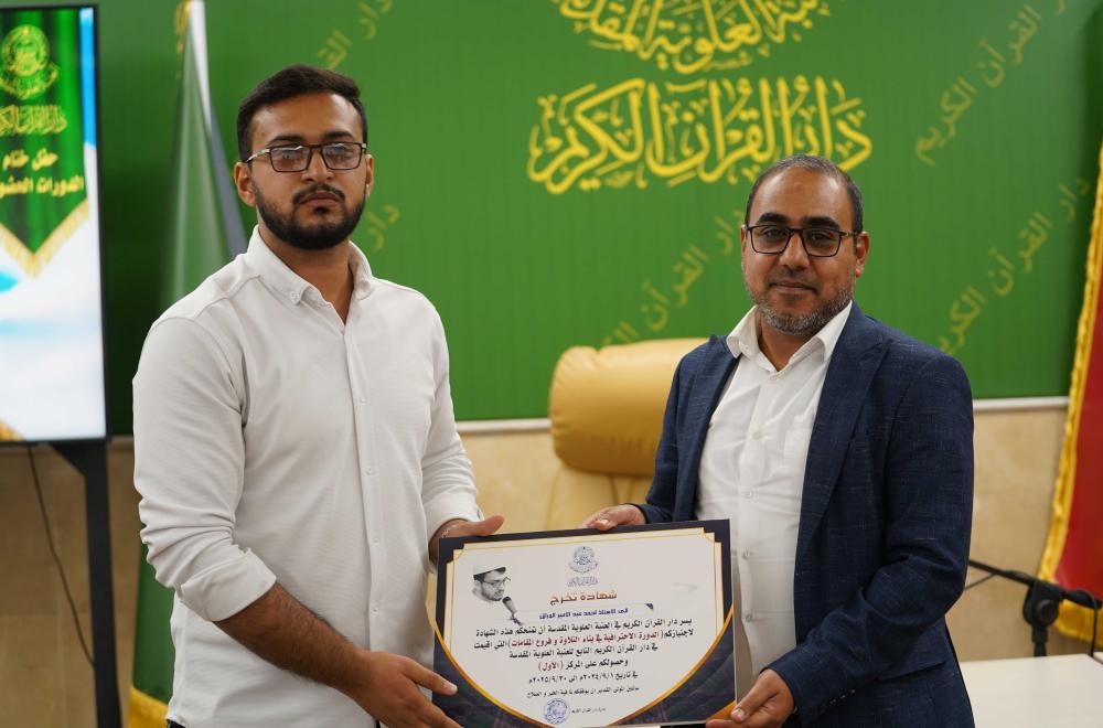 وقال مسؤول شعبة دار القرآن الكريم الخادم علاء محسن للمركز الخبري: "شهد الحفل تخرج أكثر من 35 طالبا بعد مسيرة علمية امتدت لأشهر طويلة، إذ استمرّت بعض الدورات لأكثر من شهرين، بينما تجاوزت الدورة الاحترافية في بناء التلاوة عامين كاملين من الدراسة والتدريب".