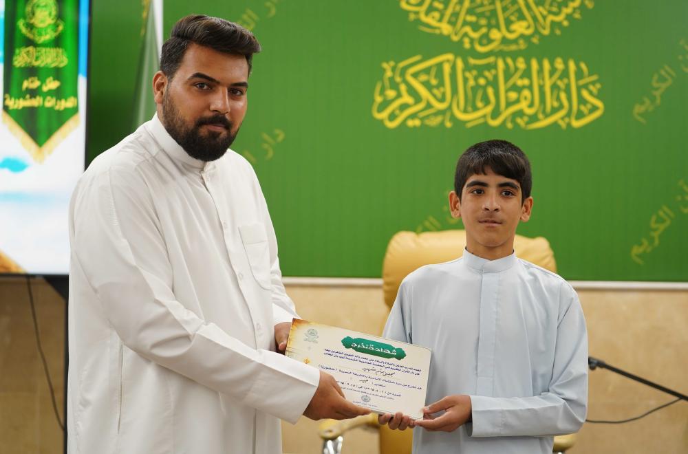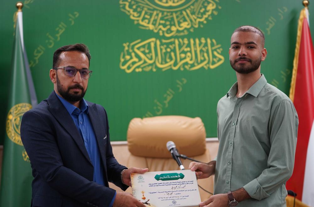 وشهِدَ الحفل تكريم المراتب الثلاث الأولى من الطلبة المتميزين في دورة إعداد الأساتذة وبناء التلاوة، حيث نال القارئ علي قيصر كريم المرتبة الثانية ضمن نخبة المتخرجين.
