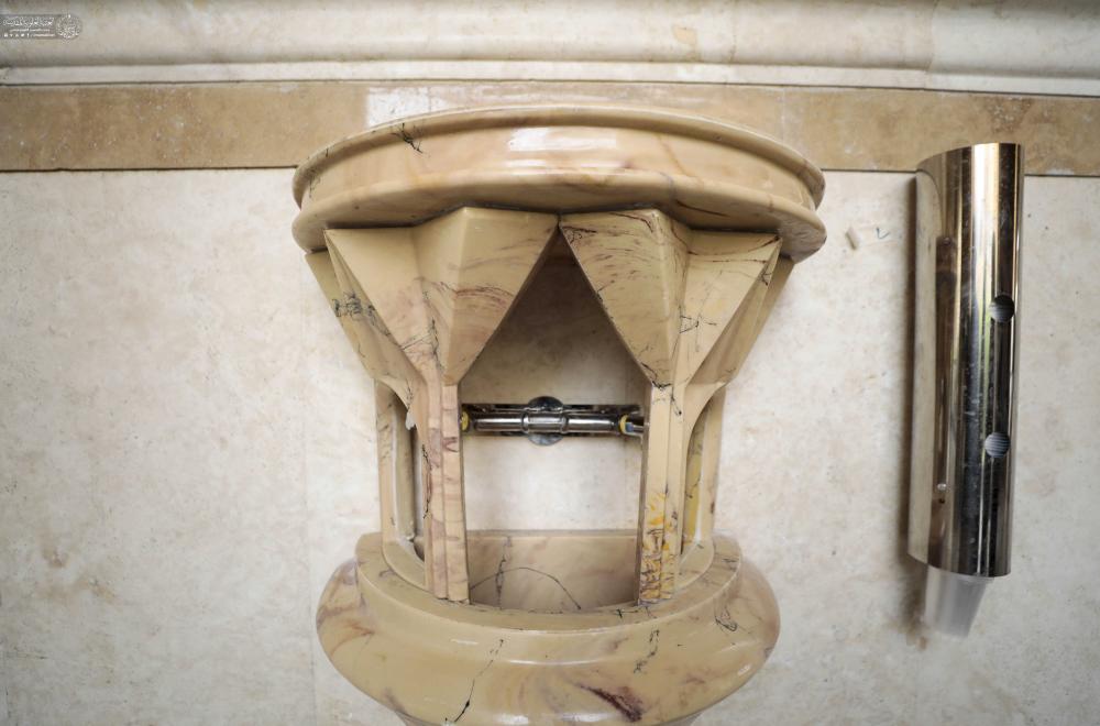 من جانبه أوضح المهندس عقيل برهان رسول، مسؤول شعبة الميكانيك في قسم الشؤون الهندسية والفنية، أنَّ المشارب المرمرية تمثّل أهمية كبرى في خدمة الزائرين، إذ يبلغ عددها أكثر من (500) مشرب موزعة داخل الصحن الشريف وخارجه، منها (78) داخل الصحن الشريف و(144) في صحن السيدة أم البنين، وهناك (264) مشرباً موزعاً في مداخل الصحن الشريف، وتضخ ما يقارب (100) ألف لتر يومياً، وتصل الكمية إلى مليوني لتر خلال الزيارات المليونية.
