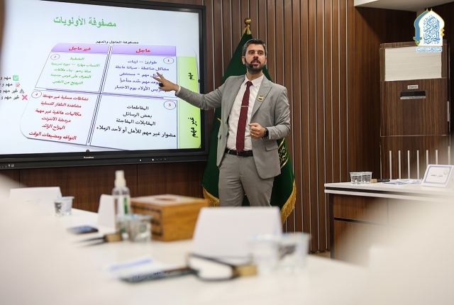 وفي هذا الإطار، نظّمت وحدة التدريب والتأهيل العلمي في العتبة الكاظمية المقدسة، دورة تدريبية متخصصة بعنوان: (فن إدارة الوقت)، شارك فيها نخبة الخدم من مختلف أقسام وشعب ووحدات العتبة الكاظمية المقدسة.