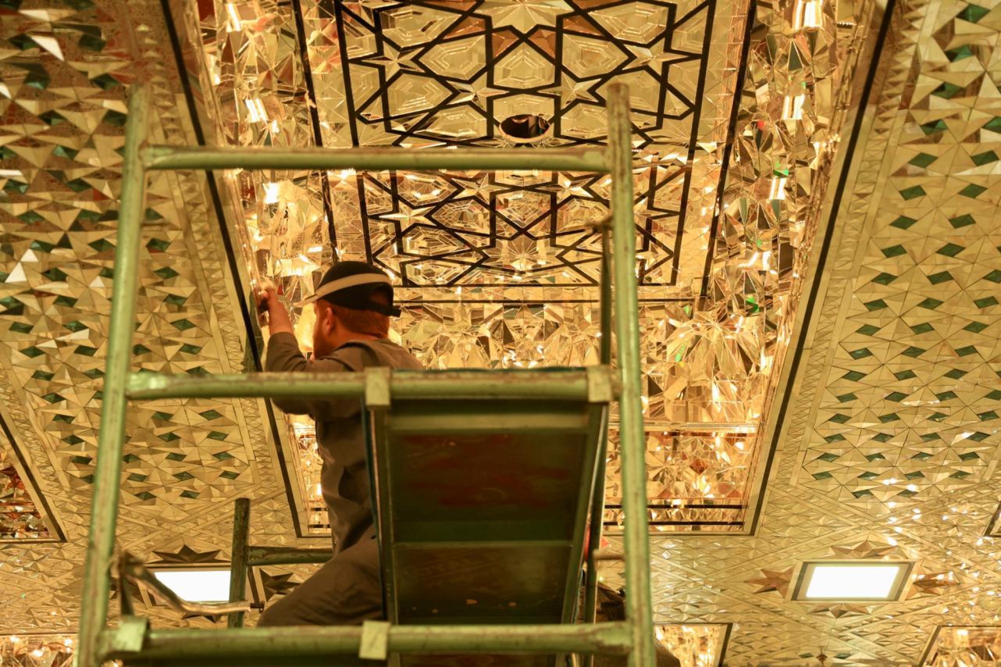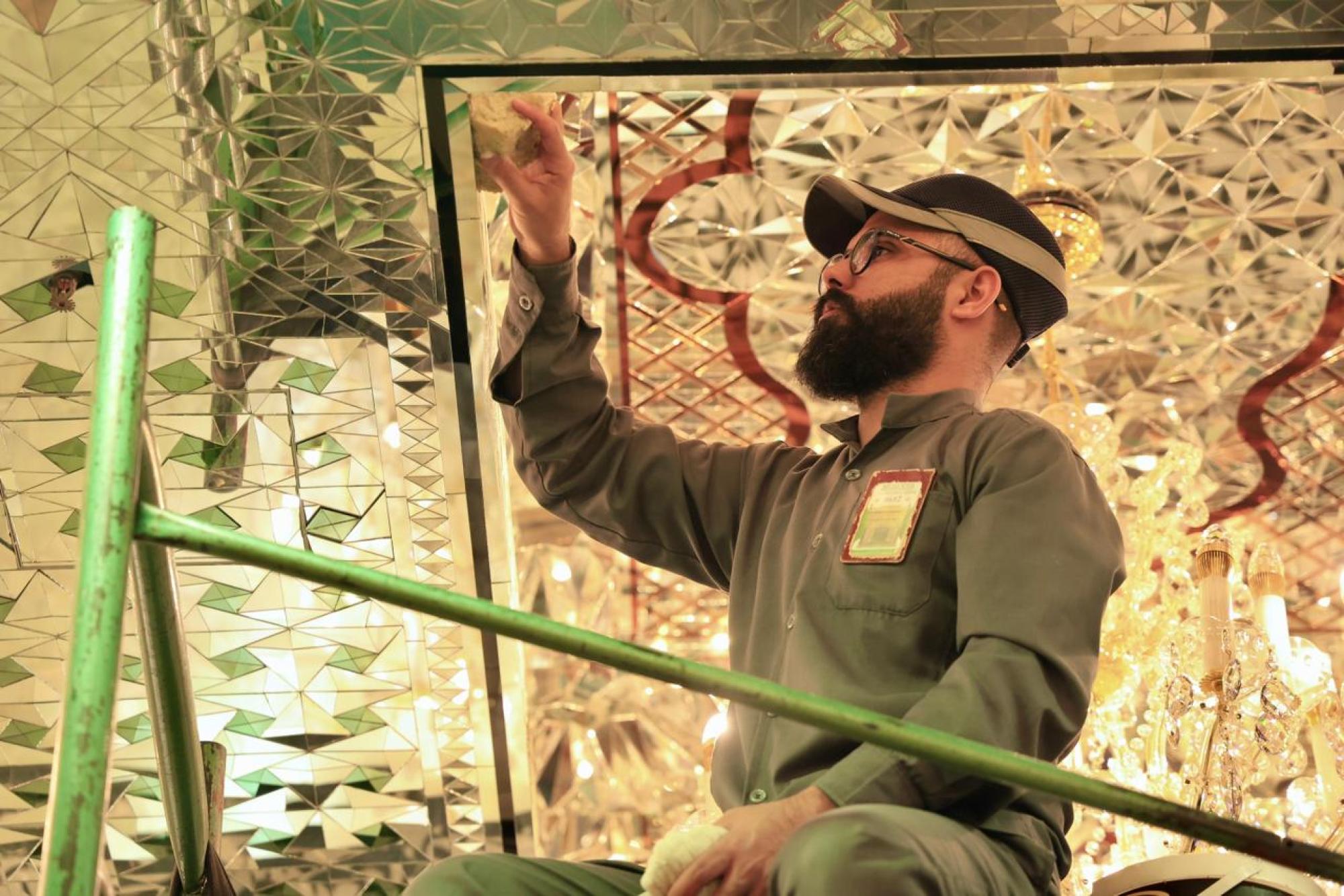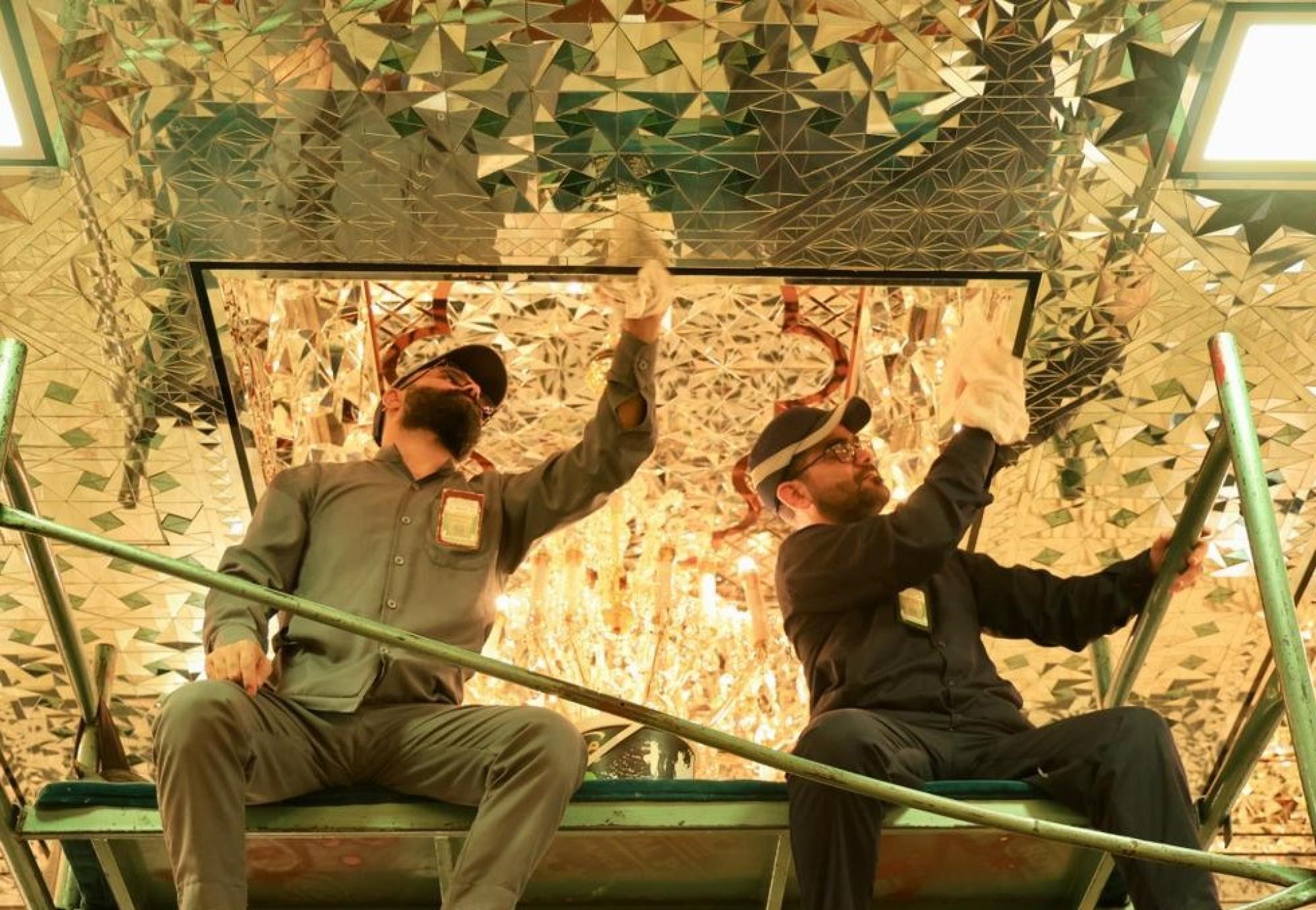 قسم الصيانة يجري أعمال إدامة لمرايا حرم مرقد أبي الفضل العباس (عليه السلام)