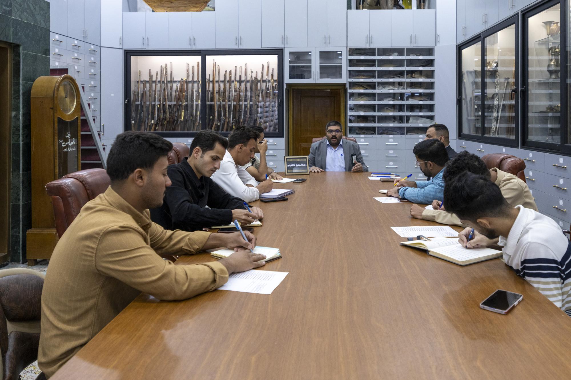 يواصل قسم متحف الكفيل للنفائس والمخطوطات في العتبة العباسية المقدسة، تقديم الورشة التدريبية الثانية المخصّصة لطلبة كلية الآثار في جامعة القادسية، ضمن برنامج تطويري يستمر أربعة أيام. وقال رئيس القسم السيد نافع نعمة الموسوي إنَّ "إقامة مثل هذه الدورات التدريبية تمثّل جزءًا من رسالة المتحف في نشر الثقافة المتحفية وتطوير القدرات الأكاديمية لدى طلبة الجامعات، وخصوصًا في المجالات التقنية التي تتعلق بالتوثيق والأرشفة لمقتنيات المتاحف". وأضاف أنَّ "محاضرات اليوم اكتسبت أهمية خاصة؛ كونها تناولت الجانب التطبيقي في التوثيق اليدوي والرقمي، وهما ركيزتان أساسيتان في عمل أي متحف يسعى إلى الحفاظ على إرثه الثقافي وفق أحدث المعايير العلمية". وتضمَّنت الورشة محاضرتين الأولى قدَّمها مسؤول وحدة التوثيق اليدوي السيد ليث حسين، وركَّز فيها على الآليات الدقيقة في تسجيل البيانات وحفظ الوثائق والمقتنيات التراثية بالطرق التقليدية الممنهجة.