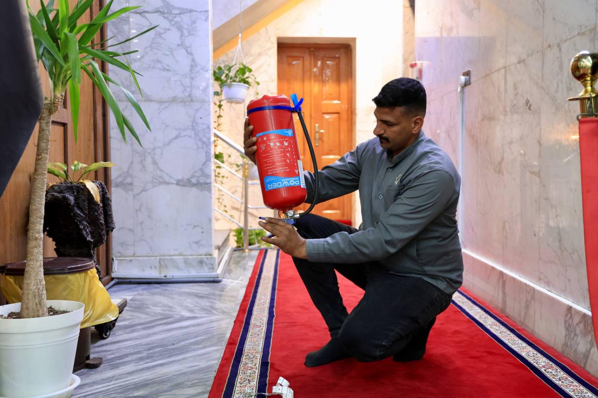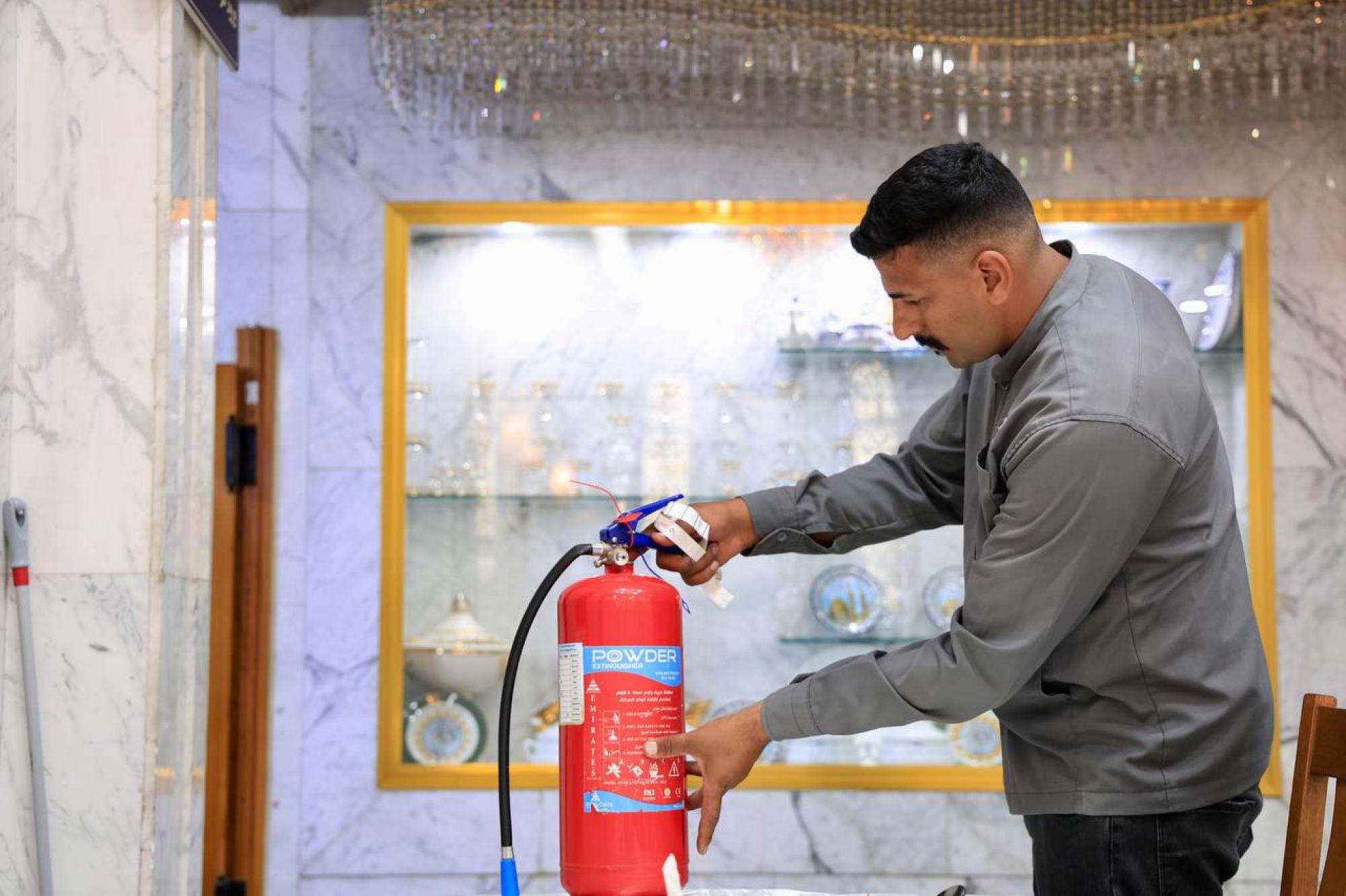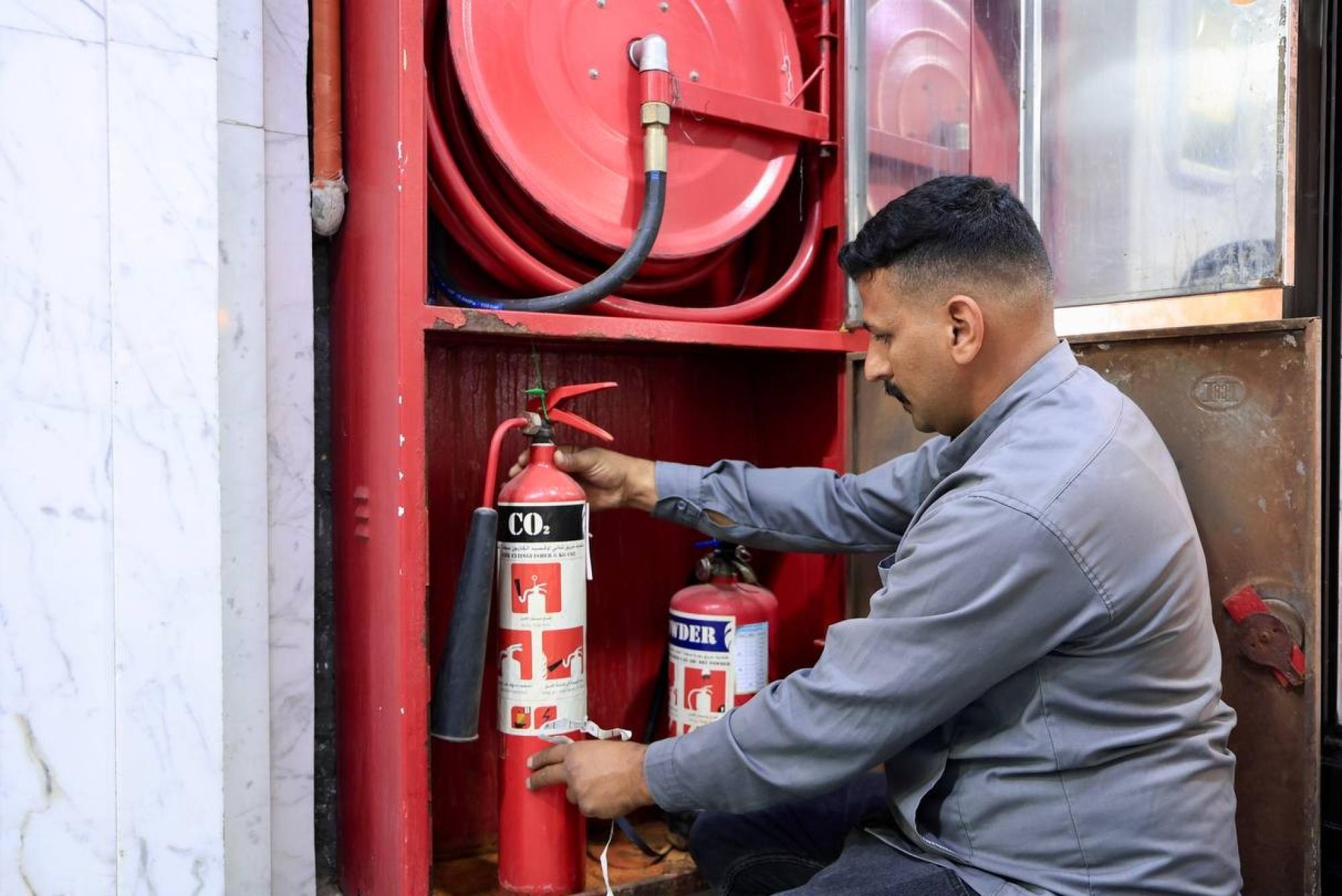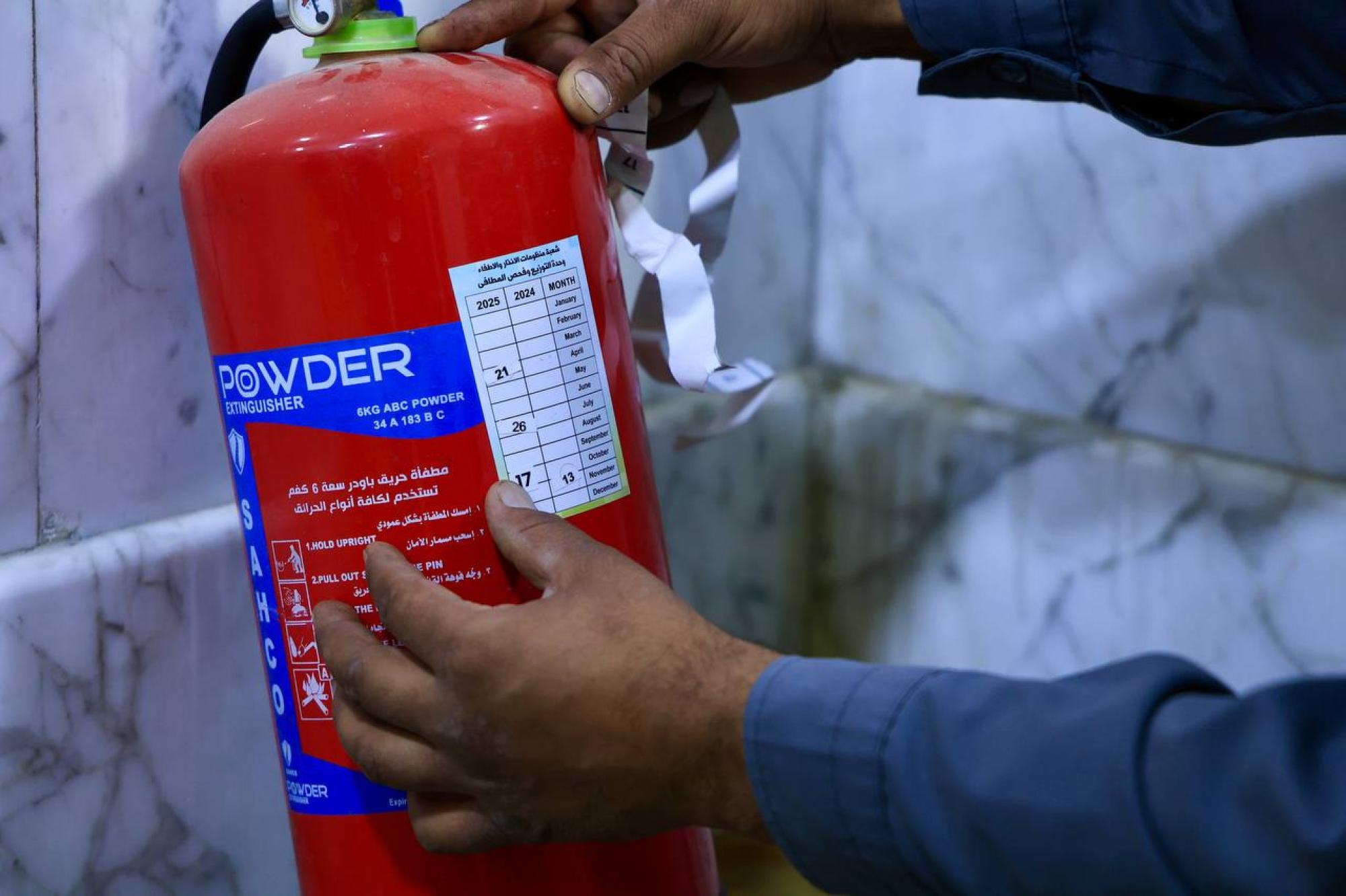 قسم الصيانة يجري الفحص الدوري لمطافئ الحريق في العتبة العباسية المقدسة