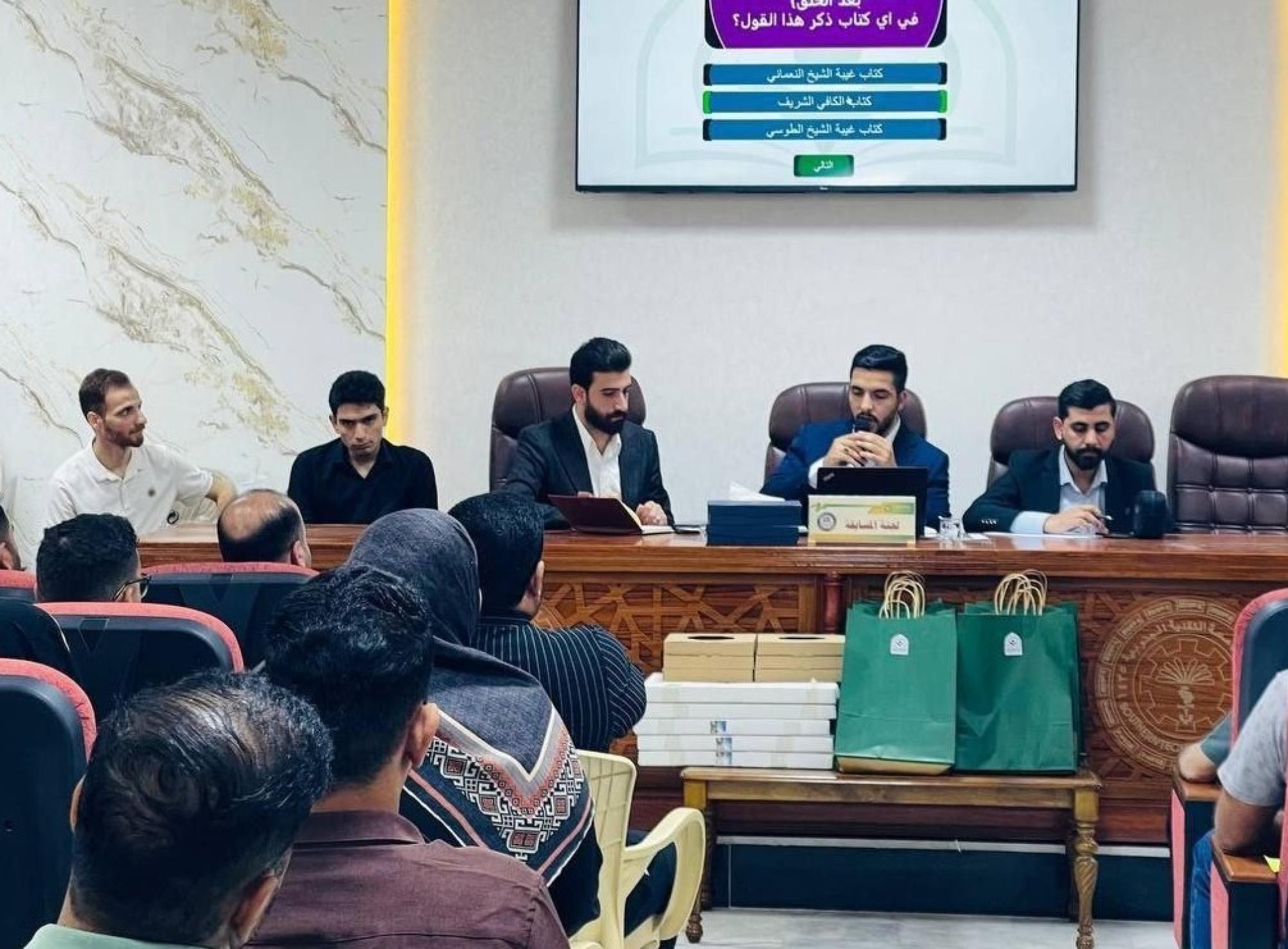 نظّم قسم الشؤون الفكرية والثقافية في العتبة العبَّاسيَّة المقدَّسة، ممثلاً بمركز ملتقى القمر الثقافي برنامجًا ثقافيًا في الجامعة التقنية الجنوبية بمحافظة ذي قار. وقال مدير المركز الشيخ حارث الداحي: إنَّ "البرنامج تضمَّن محاضرة ثقافية ألقاها الشيخ حسين الزيدي، تناول فيها جملةً من المفاهيم الفكرية القيمية التي تسهم في بناء الوعي الأخلاقي والمعرفي لدى الشباب الجامعي، بحضور نخبة من الأساتذة والطلبة والمهتمين بالشأن الثقافي والفكري". وأضاف أنَّ "البرنامج تخللته مسابقة معرفية شهدت أجواءً من الحماس والتفاعل، أسهمت في ترسيخ الأهداف المعرفية المرجوَّة من البرنامج لدى الطلبة".
