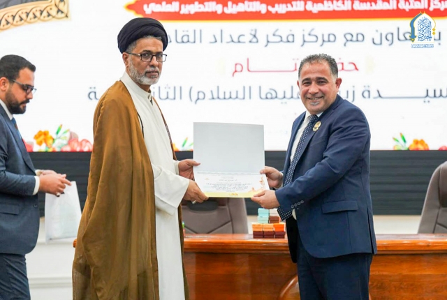 احتفت الأمانة العامة للعتبة الكاظمية المقدسة بتخرّج الدفعة الثانية من خادمات العتبة الكاظمية المقدسة المشاركات في دورة السيدة زينب "عليها السلام" التي أقيمت ضمن برنامج "المرأة القيادية" الذي نظمه مركز التدريب والتأهيل والتطوير العلمي في العتبة الكاظمية المقدسة، بالتعاون مع مركز فكر لإعداد القادة.