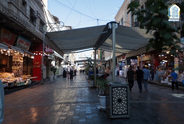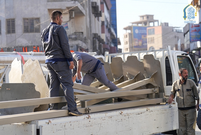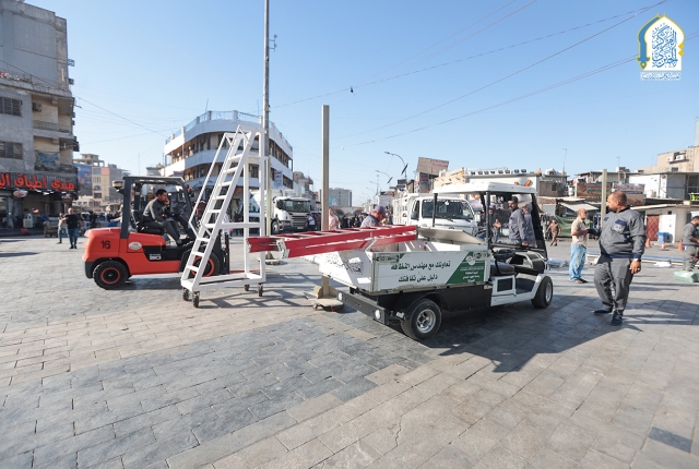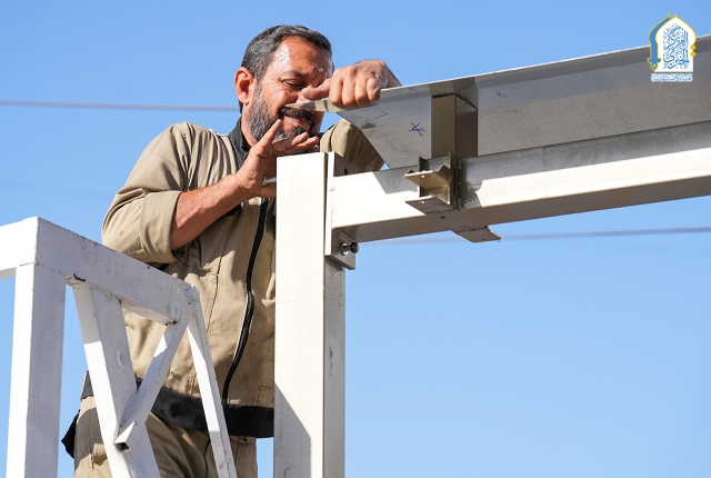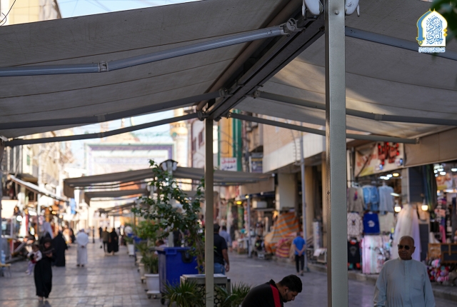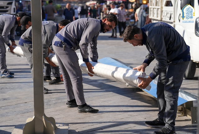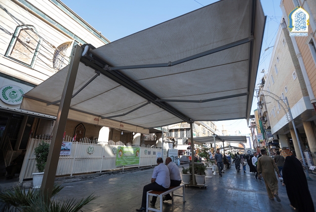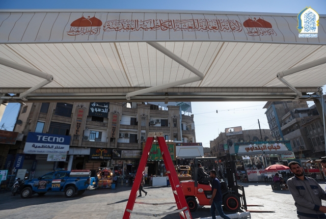 العتبة الكاظمية المقدسة تنصب المظلات المتحركة في شارع باب القبلة