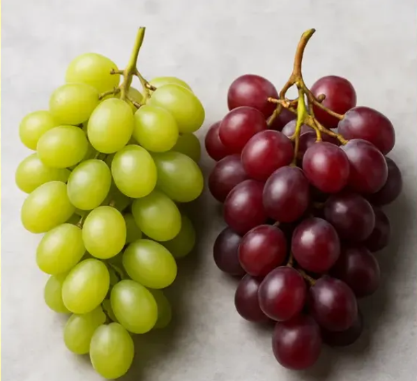 كما أن العنب الأحمر والأخضر يختلفان في تركيز المركبات التي تعزز صحة الجسم، مثل الريسفيراترول والأنثوسيانين.