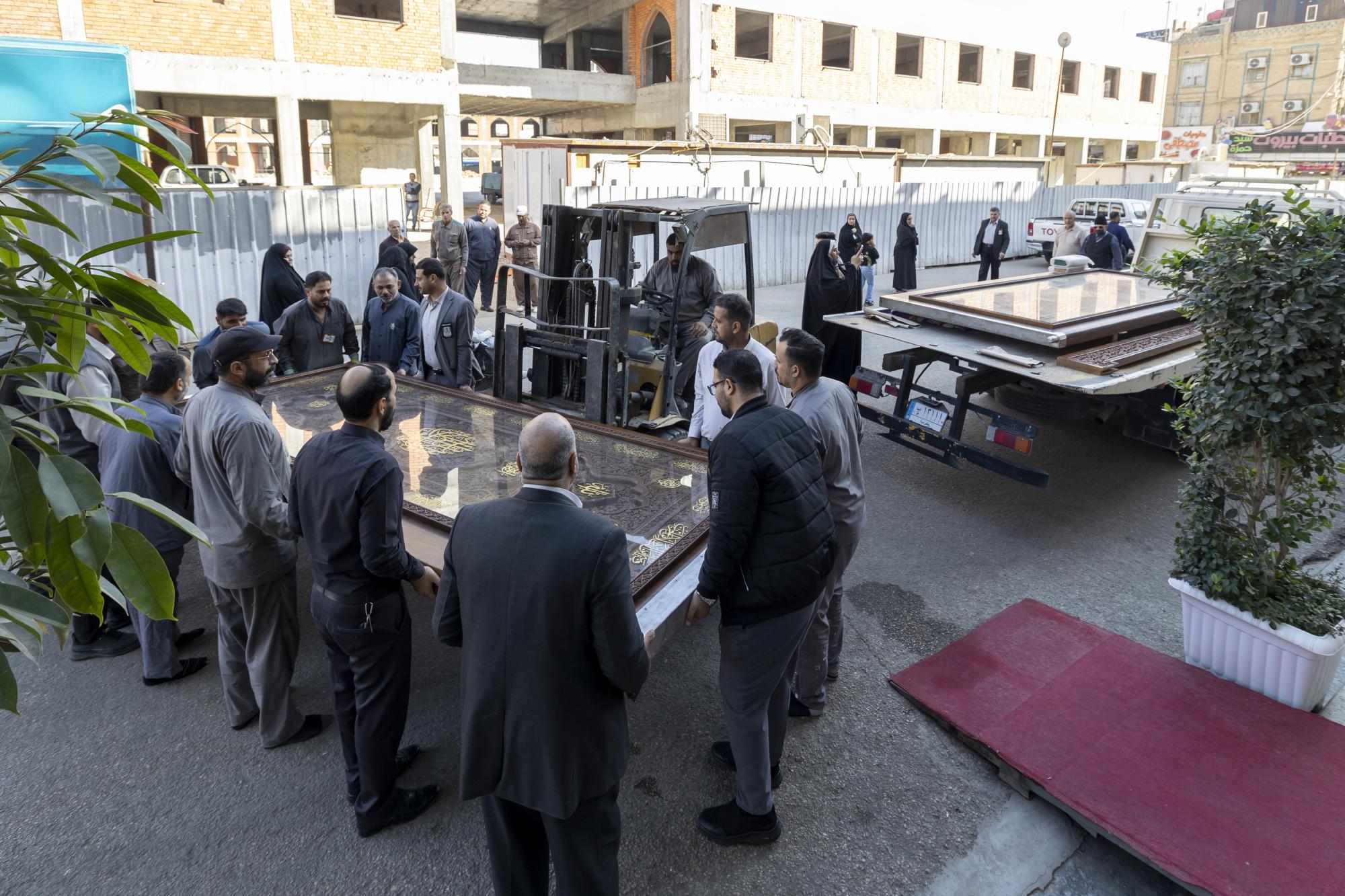 باشر قسم صناعة شبابيك الأضرحة الشريفة وأبوابها في العتبة العباسية المقدسة أعمال تنصيب باب الإمام محمد الجواد (عليه السلام) في صحن مرقد أبي الفضل العباس (عليه السلام). وقال رئيس القسم السيد ناظم الغرابي: إنّ ملاكات القسم باشرت أعمال تثبيت باب الإمام محمد الجواد (عليه السلام)، إذ أُجري الفحص الدقيق لجميع الأجزاء الخشبية للباب قبل تنصيبه في صحن مرقد أبي الفضل العباس (عليه السلام). وبيّن أنّ "أعمال تثبيت الباب نُفذت بأياد عراقية ماهرة في القسم"، مشيرًا إلى أنّ "الباب يتميز بخصائص وأبعاد فنية دقيقة، إذ يبلغ ارتفاعه نحو 3.82م، وعرضه 3.30م، وسمكه 31سم، فيما بلغت أبعاد الإطار المحيط بالباب 4.11م طولًا، و3.87م عرضًا".
