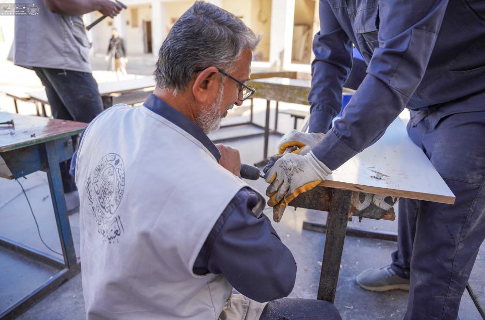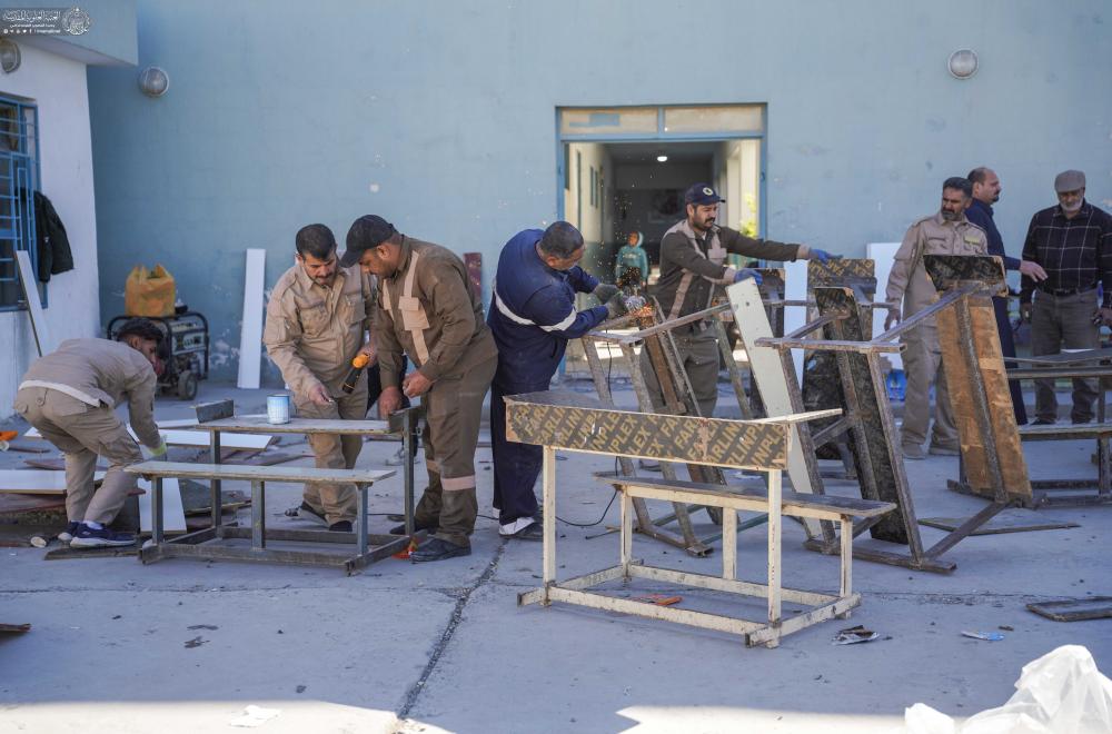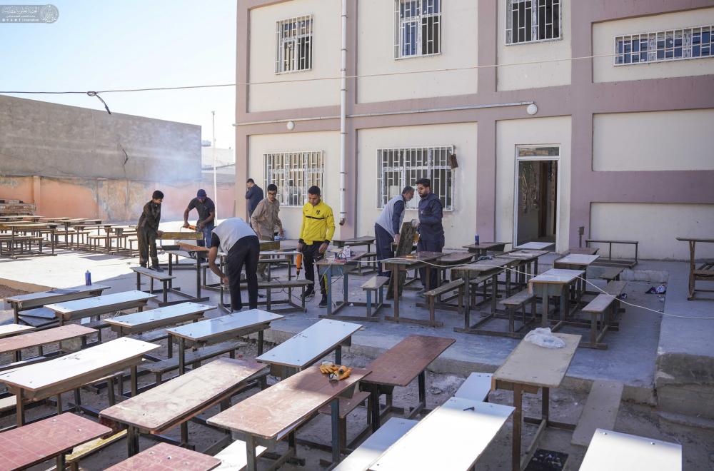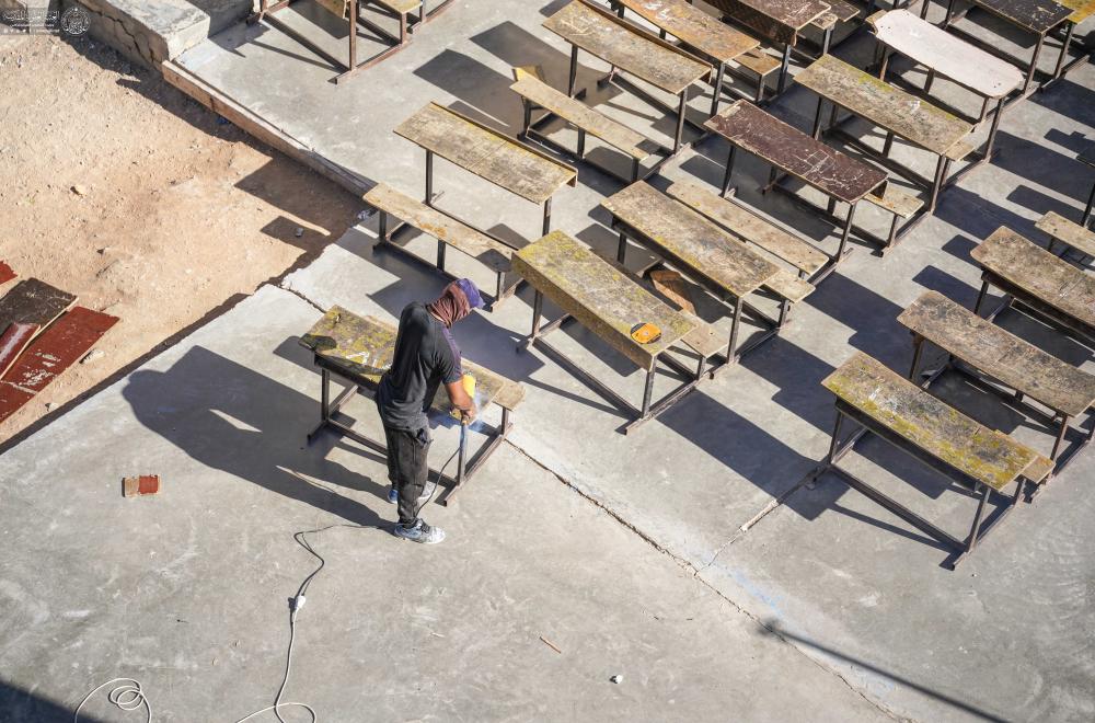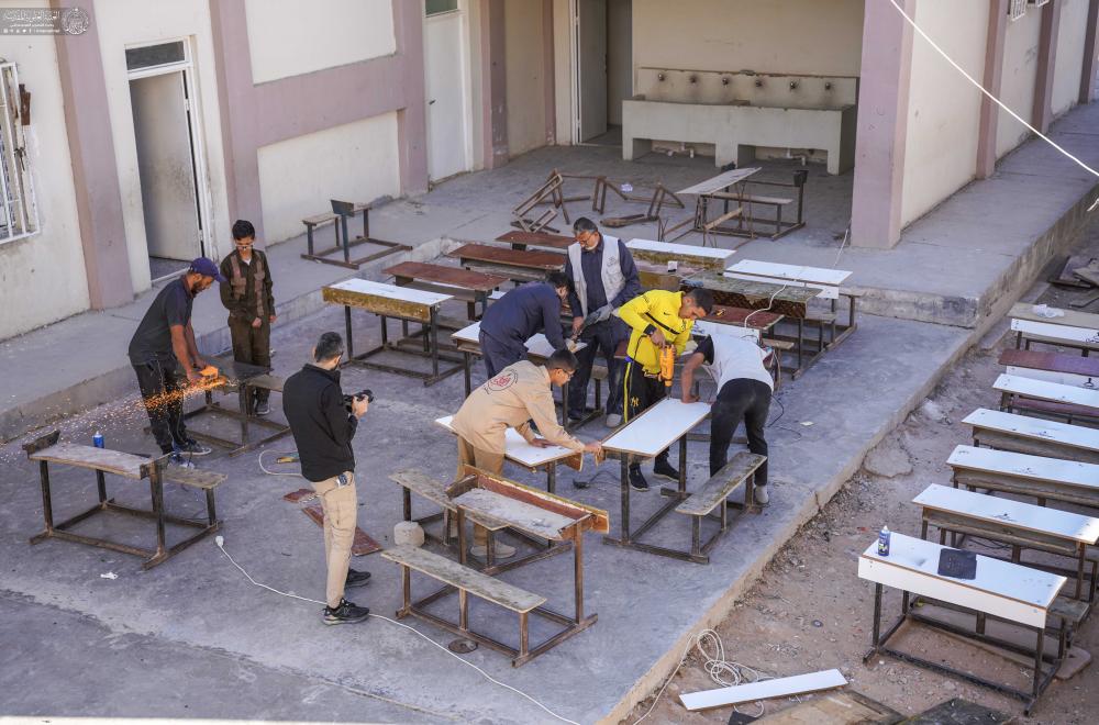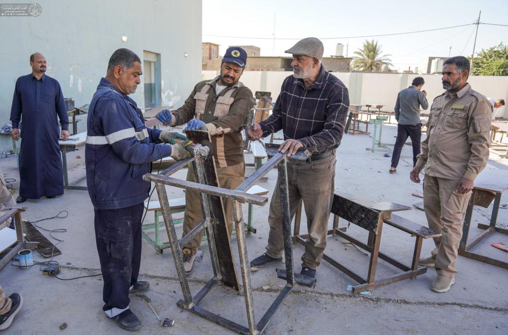 مركز قنبر يواصل حملة "عليٌّ أبونا" لصيانة وتجهيز المقاعد الدراسية في أرياف النجف الأشرف