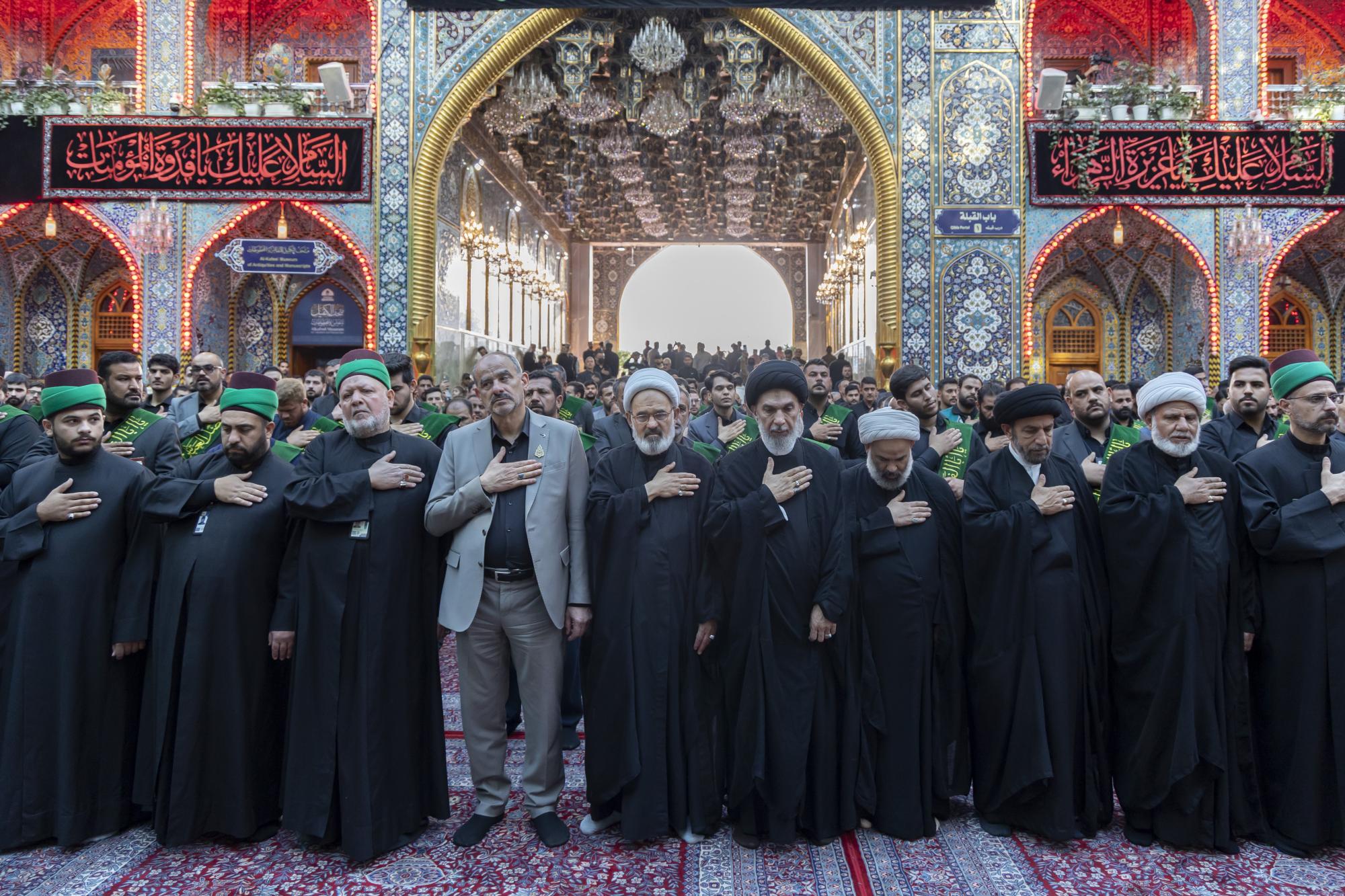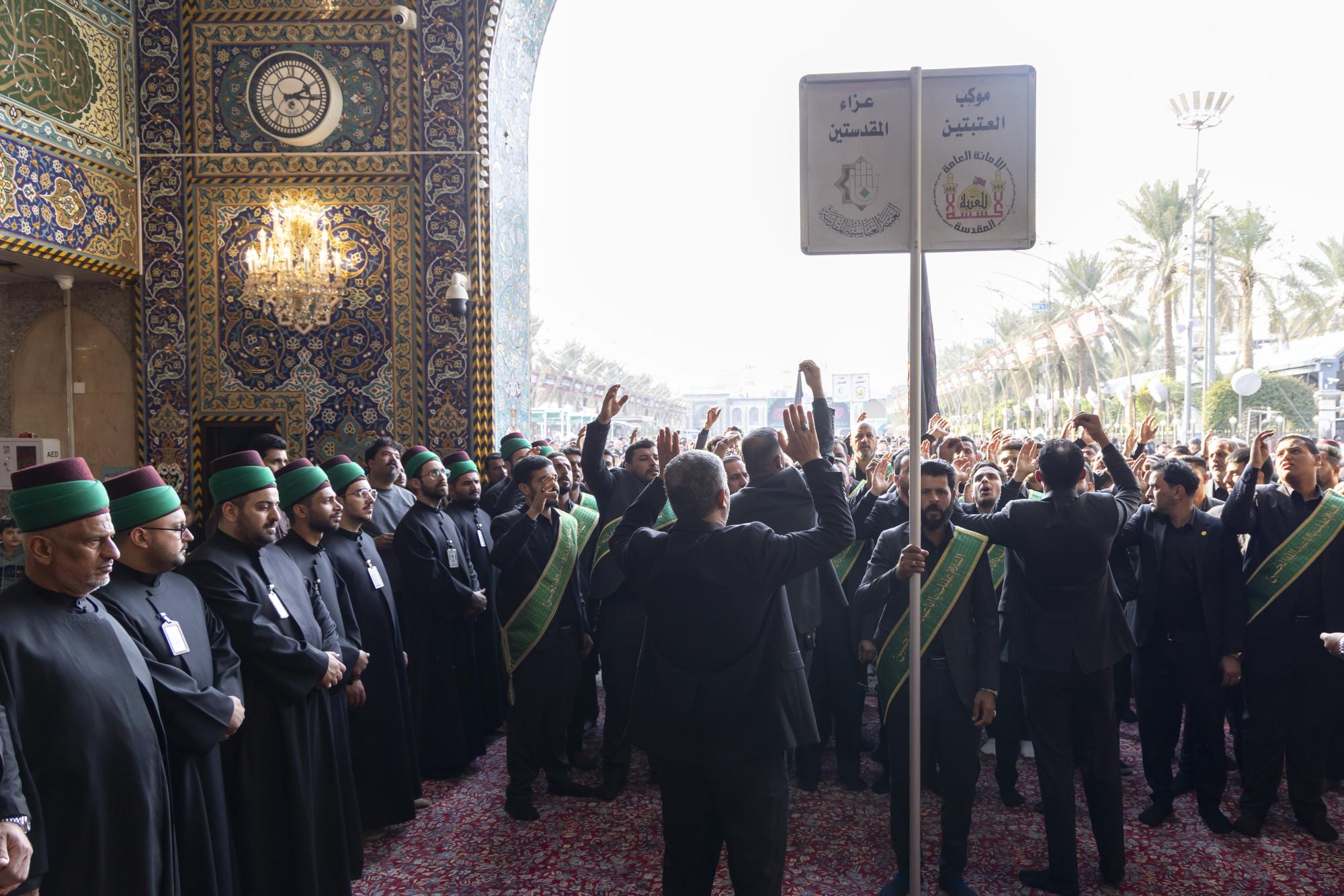 أحيا خَدَمة العتبتَينِ المقدّستَينِ الحسينية والعبّاسية، ذكرى وفاة السيدة أم البنين(عليها السلام)، عَبرَ موكب عزاءٍ موحّد. وحضر الموكبَ أعضاء مجلس إدارة العتبة العبّاسية المقدّسة، كلٌّ من السيد ليث الموسوي والدكتور عباس الدده الموسوي والسيد كاظم عبادة، إلى جانب عددٍ من خَدمَة العتبتَينِ المقدّستَينِ. وانطلق الموكبُ من صحن مرقد الإمام الحسين(عليه السلام)، مرورًا بساحة بين الحرمين الشريفَيْن، وصولًا إلى مرقد أبي الفضل العبّاس(عليه السلام) لتعزيته بهذه المناسبة الأليمة، إذ ردَّد المعزّون في مسيرهم كلماتٍ جسّدت مشاعر الحزن والأسى، وبيّنت مدى وقع هذا المصاب على نفوس المؤمنين.
