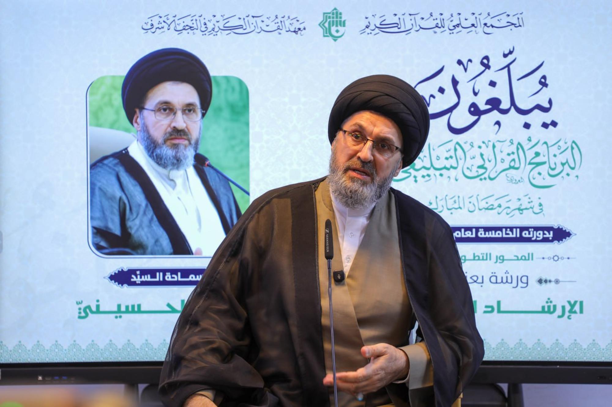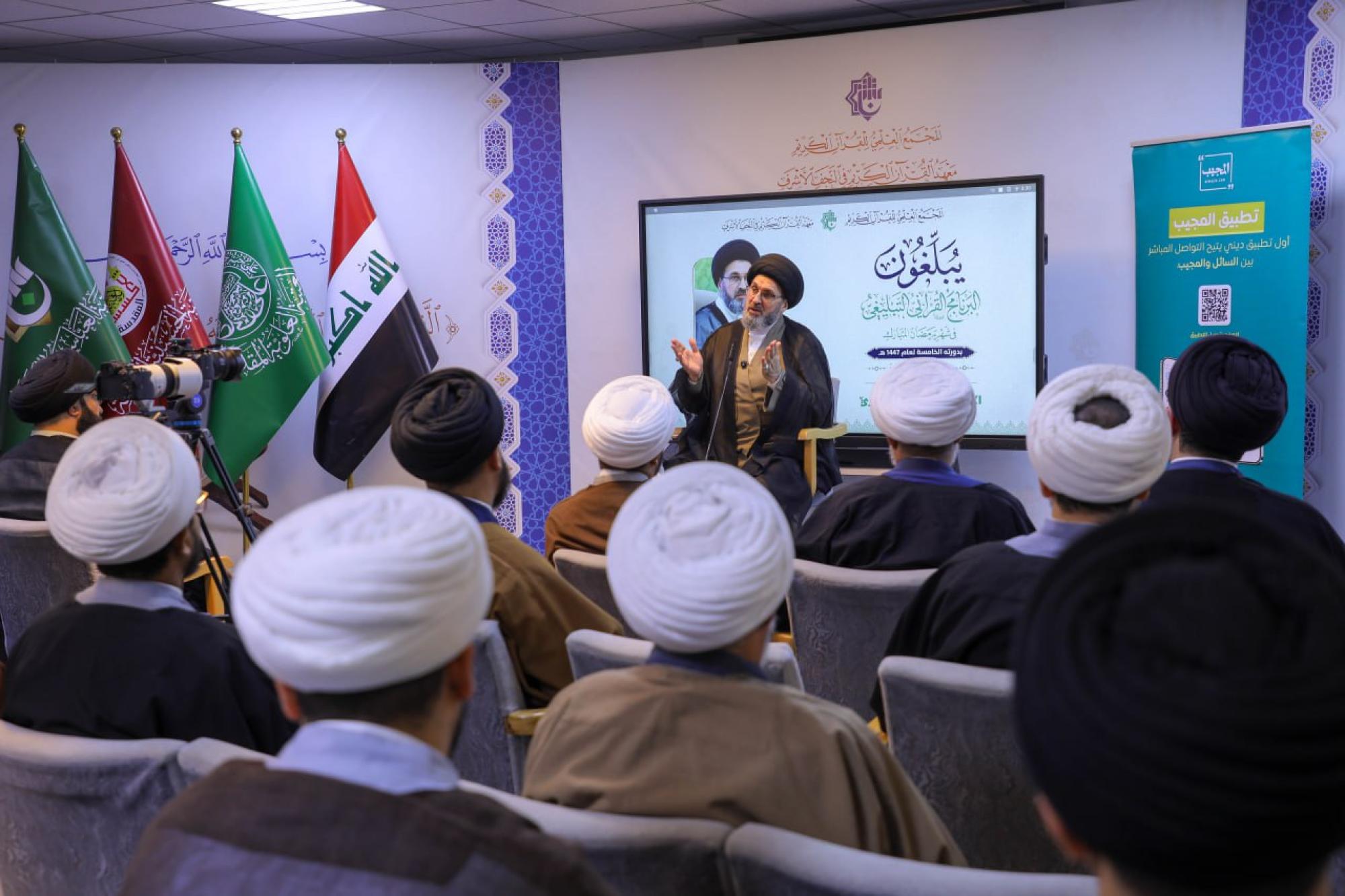 أقام المَجمَعُ العلميّ للقرآن الكريم في العتبة العبّاسيّة المقدّسة، ورشته التطويرية الثالثة لإعداد ثمانين مُبلّغًا من طلبة العلوم الدينية. وتُقام الورشة ضمن برنامج "يُبَلِّغُون" الذي ينظّمه معهدُ القرآن الكريم في النجف الأشرف التابع للمجمَع، الذي يأتي ضمن المشروع القرآنيّ لطلبة العلوم الدينيّة في دورته العاشرة لعام 1447هـ. وقال مسؤولُ وحدة الشؤون الحوزويّة القرآنيّة في المعهد الشيخ وسام السبتيّ، إنّ "الورشة الثالثة من ورش المحور التطويريّ حاضرَ فيها السيد رشيد الحسينيّ، الذي تطرّق خلالها إلى الجوانب الأسريّة، وقدّم شرحًا حول كيفيةِ تمكين المبلِّغ من بناء ذاتهِ أوّلًا، ثم بناء محاضراته في مجال الإرشاد الأسريّ ثانيًا"، مؤكّدًا أن "أبرز أسس نجاح المبلِّغ إلمامُه بالجوانب الاجتماعية والثقافيّة للبيئة التي يعمل فيها، ليكون قادرًا على إيصال رسالته بوعيٍ وفاعليّة".