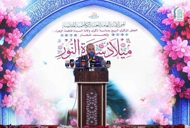 وأضاف مؤكداً: أن العَتَبَةَ الكاظِمِيَّةَ المُقدَّسَةَ، وهي تستقبِلُ هذه المناسبةَ المُبارَكةَ في رِحابِ الإمامينِ الكاظِمَيْنِ الجَوادَيْنِ "عَلَيْهِما السَّلامُ"، تُجدِّدُ عَهْدَ الوَلاءِ والاقتِداءِ بنَهْجِ الصِّدّيقةِ الطّاهرةِ، وتُؤكِّدُ رِسالَتَها في إحياءِ سيرتِها العَطِرَةِ، وتَرسِيخِ قِيَمِها الرَّفيعَةِ في المُجتمعِ؛ قِيَمِ الحَياءِ والعِفَّةِ، والعِلْمِ والعَمَلِ، والتَّضحيةِ والإيثارِ، والالتزامِ بتعاليمِ الإسلامِ المُحمَّديِّ الأصيلِ، ومِنها الالتزامُ بالحِجابِ الشَّرعيِّ والعَباءةِ الفاطِمِيّةِ الزَّيْنَبِيّةِ.. تِلْكَ العَباءةُ الَّتي تَرْمزُ إلى السُّمُوِّ والهَيبةِ والإِجلالِ.. مِمّا دَفَعَ بأَعْداءِ الإسلامِ إلى مُحارَبَتِها ومُحارَبَةِ كُلِّ مَعاني العِفَّةِ والحِجابِ في مُجْتَمَعاتِنا لِلنَّيْلِ مِن مَكانَةِ المَرأَةِ، وبِالتّالي تَخْريبِ نِصْفِ المُجْتَمَعِ... وبهذه المناسبةِ المباركةِ، تدعو الأمانةُ العامّةُ للعَتَبَةِ الكاظِمِيَّةِ المُقدَّسَةِ جميعَ أبنائِها وزُوّارِها الكِرامِ إلى أنْ تكونَ سيرةُ السَّيِّدةِ الزَّهْراءِ "عَلَيْها السَّلامُ" مَنارًا في البُيوتِ، ومَصدَرَ إلهامٍ في التَّربيةِ، ومَنْهَجًا في تَعزيزِ الأخلاقِ والوعيِ والإحسانِ، ولا سيَّما في زَمنٍ أحوَجَ ما نَكونُ فيه إلى النَّماذجِ الإيمانيّةِ التي تَرفعُ مِن مُستوى الوعي وتُصلِحُ الواقِعَ).