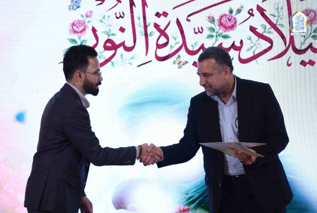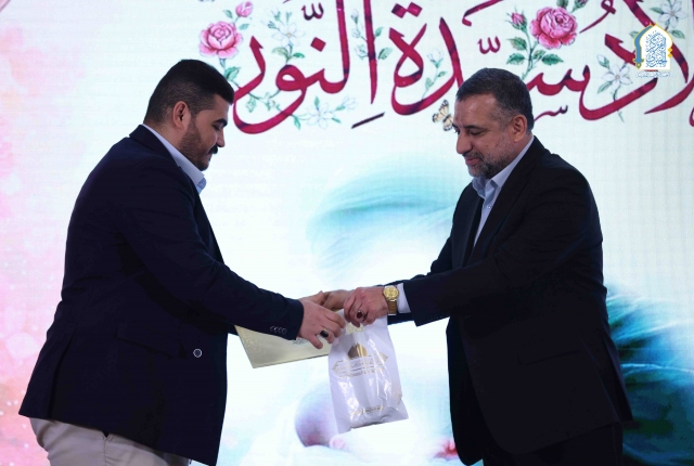 ثم كرّم السيد الأمين العام للعتبة الكاظمية المقدسة ثلة من الشباب المؤمن الذي نفّذ مجموعة من الأعمال الفنية في رحاب الصحن الكاظمي الشريف سلّطت الضوء على صفحات من حياة سيدتنا فاطمة الزهراء "عليها السلام" وبهذا توحّد الحضور على معاني المحبة والولاء، وارتفعت القلوب قبل الأصوات وهي تستلهم من سيرتها العطرة دروس الطهر والإيمان، لتغدو هذه المناسبة المباركة محطة إشراق تتجدد فيها العهود، وتستنهض فيها الهمم للسير على نهج آل بيت النبي "عليهم السلام".