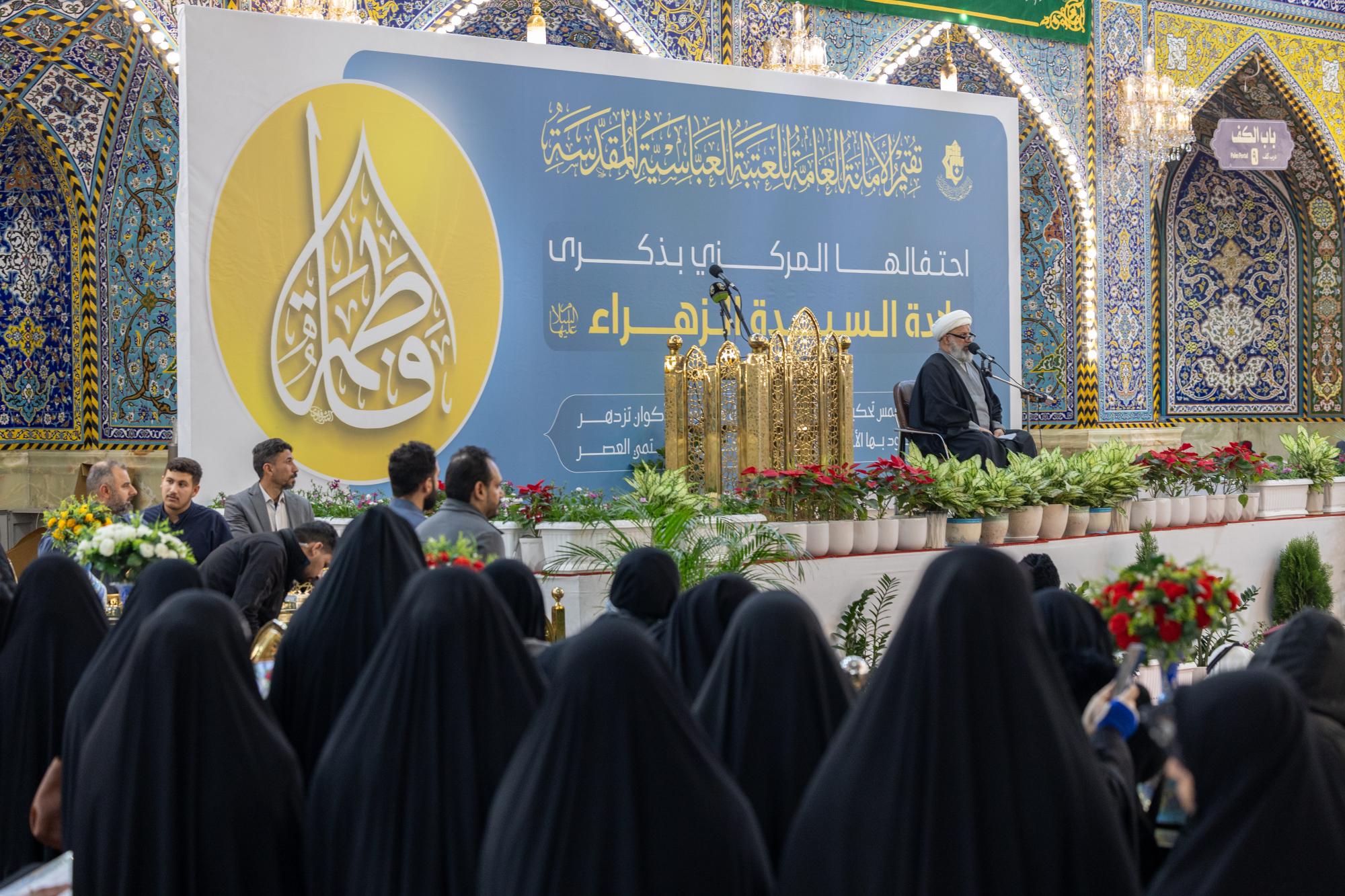 استذكرت العتبة العباسية المقدسة جوانب من السيرة العطرة للسيدة فاطمة الزهراء (عليها السلام) بذكرى ولادتها المباركة. جاء ذلك في كلمة الأمانة العامة للعتبة المقدسة التي ألقاها الشيخ علي موحان، ضمن فعاليات الحفل المركزي بذكرى ولادة السيدة الزهراء (عليها السلام) في صحن مرقد أبي الفضل العباس (عليه السلام)، إذ قدّم التهاني للحاضرين وللأمّة الإسلامية بمناسبة حلول الذكرى المباركة. وشهد الحفل حضور عضوي مجلس إدارة العتبة المقدسة السيد محمد الأشيقر، والدكتور أفضل الشامي، وعدد من مسؤوليها، وجمع غفير من الزائرين. وسلّط موحان في كلمته الضوء على سيرة سيدة نساء العالمين السيدة الزهراء (عليها السلام)، ومكانتها السامية في الدين الإسلامي، مؤكّدًا أنّ هذه المناسبات المباركة تُعدّ محطات روحية ومعنوية يستلهم منها المؤمن قوّة الإيمان وعمق الارتباط الوثيق بأهل بيت الرحمة (عليهم السلام).