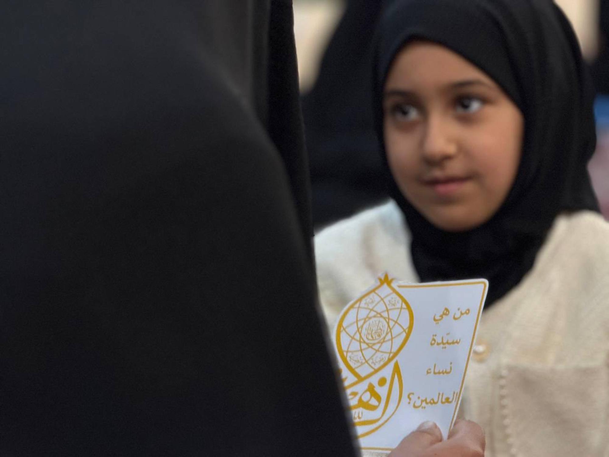نظمت شعبة التوجيه الديني النسوي التابعة لمكتب المتولي الشرعي للشؤون النسوية في العتبة العباسية المقدسة، مسابقة ميدانية بعنوان (براعم السقّاء) للأطفال تزامنًا مع ذكرى ولادة السيدة فاطمة الزهراء (عليها السلام). وقالت مسؤولة الشعبة، السيدة عذراء الشامي: إنّ "الشعبة نظمت المسابقة للأطفال في صحن مرقد أبي الفضل العباس (عليه السلام)، وتضمنت فقرات متعددة، منها فتح حوار مع الأطفال؛ لتعريفهم بشخصية السيدة الزهراء (عليها السلام) وكيفية الاقتداء بها". وأضافت أنّ "المسابقة شهدت تفاعل ذوي الأطفال القادمين من داخل العراق وخارجه، وعملت الشعبة على استثمار هذا التفاعل بتقديم الإرشادات والنصائح عن أهمية إحياء الشعائر ودورها في بناء شخصية الأطفال، فضلًا عن توزيع مجموعة من الهدايا لهم".