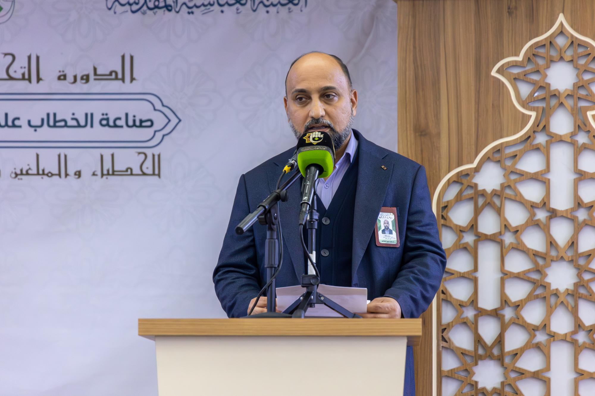 أكّدت العتبةُ العبّاسية المقدّسة أنّ دورة على هدي نهج البلاغة، حقّقت أهدافها المعرفية والفنية والتبليغية، للمشاركين من الخطباء والمبلّغين وطلبة العلوم الدينية. جاء ذلك في كلمة الأمانة العامّة للعتبة المقدّسة، التي ألقاها رئيسُ دار علوم نهج البلاغة التابعة للعتبة المقدّسة الدكتور لواء العطية، ضمن فعّاليات الحفل الختامي للدورة التخصّصية الأولى الموسومة بـ (صناعة الخطاب على هدي نهج البلاغة). وقال العطية "في ظلّ التحدّيات الفكرية المعاصرة التي تعصف بمجتمعنا، وتزعزع أسسه وبناءه بنشر الشبهات، وإشاعة الثقافات المجتزأة والنصوص المبتورة من أنصاف المتعلّمين، أخذت المرجعية الدينية العُليا في النجف الأشرف على عاتقها التخطيط والعمل الجادّ بثنائية التحصيل والتحصين، من أجل البناء المعرفي الرصين، الذي به تصدّ هذه الواردات الهجينة وتبيّن به المبهمات الدخيلة، وقد تجلّت هذه الأعمال بالتشكيلات التراثية والفكرية التي ترعاها العتباتُ المقدّسة، ومنها العتبة العبّاسية المقدّسة". وأضاف "من هذا المنطلق عملت دارُ علوم نهج البلاغة في العتبة العبّاسية المقدّسة منذ تأسيسها، على إحياء علوم كتاب نهج البلاغة ومعارفه المتنوّعة في وجدان مجتمعنا المسلم، مثلما تعمل على إحياء التراث العلمي لأمير المؤمنين علي بن أبي طالب(عليه السلام)، بحثاً وتأليفاً وتحقيقاً عبر جملة من المشاريع الاستراتيجية". وبيّن العطية أن "دورة صناعة الخطاب على هدي نهج البلاغة استهدفت ثلّةً طيبة من المبلّغين وطلبة العلوم الدينية، واستمرّت 12 أسبوعاً بواقع 12 محاضرةً علمية، قدّمها الشيخ الدكتور أركان التميمي، وقد حقّقت هذه جملة من الأهداف التي تجلّت باكتساب ثلاثة أنواعٍ من القيم". وتابع رئيس الدار أن "القيمة الأولى (القيمة المعرفية)، وتمثّلت بتزويد الخطيب بأدواتٍ مستمدّة من نهج البلاغة تساعده على صياغة خطابٍ مؤثّر، يجمع بين الإقناع العقلي والإقناع الوجداني، وتدريبه على قراءة نصوص الإمام علي(عليه السلام) بوصفها مرجعاً تطبيقياً للخطاب التبليغي، مع استخراج محاور مناسبة للمنبر الحسيني". وذكر "أمّا القيمة البلاغية الفنية فتحقّقت بتطوير مهارات الإلقاء والصوت بما يتناسب مع مقام المنبر، وتعلّم فنون الاستشهاد بنصوص نهج البلاغة بطريقةٍ حيّةٍ غير تقليدية، تلامس قلوب المستمعين قبل عقولهم، بينما القيمة الثالثة التبليغية تحقّقت بتمكين الخطيب من صناعة خطابٍ يتعامل مع قضايا المجتمع اليومية بروح نهج البلاغة، وقيمه الإنسانية، وتحويل الخطاب إلى أداة تغييرٍ اجتماعيّ لا مجرّد خطابٍ وعظي".
