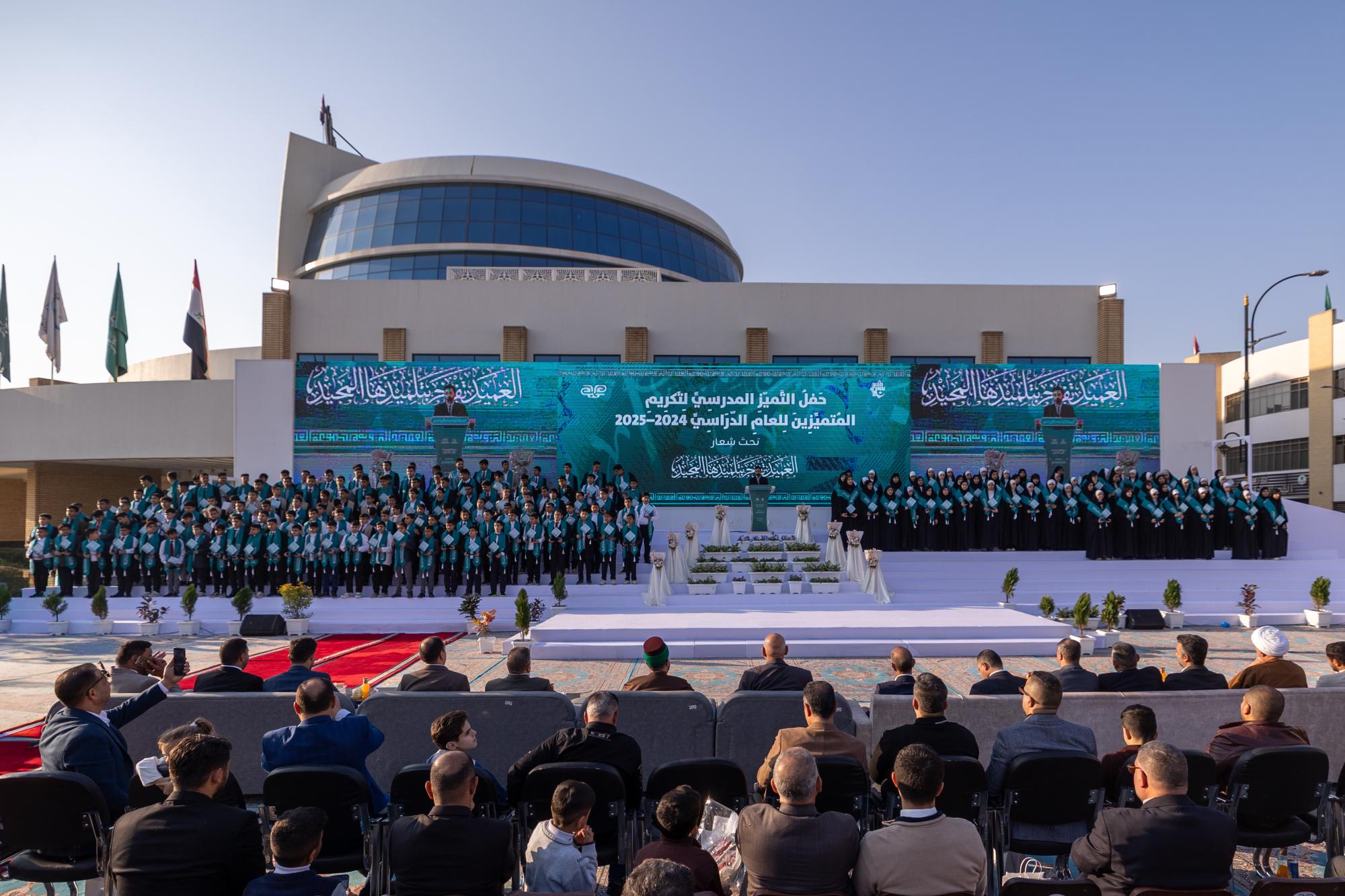 كرّم قسمُ التربية والتعليم في العتبة العبّاسية المقدّسة، طلبة مجموعة العميد التربوية المتميّزين للعام الدراسيّ 2024 - 2025. ونُظِّم الحفلُ في المجموعة التابعة للقسم تحت شعار (العميد تفخر بتلميذها المُجِيد)، بحضور الأمين العام للعتبة المقدّسة السيد مصطفى مرتضى آل ضياء الدين، ونائبه السيد عباس موسى أحمد وعددٍ من مسؤوليها، وشخصيات رسمية وتربوية، وأولياء أمور الطلبة. واستُهِلّت الفعّاليات بتلاوة آياتٍ عطرةٍ من القرآن الكريم بصوت القارئ علي الربيعي، تلتها كلمةُ القسم، ألقاها مديرُ مجموعة العميد التربوية للبنين الدكتور عادل الكركوشي، ومن ثمّ عرضُ فيلمٍ وثائقيّ جسّد دور الأسرة والمدرسة في دعم الطلبة وتفوّقهم الدراسي، وبعدها أداءٌ مسرحيّ قدّمه طلبةُ المجموعة بعنوان (المتعلّم يصنع الأثر).