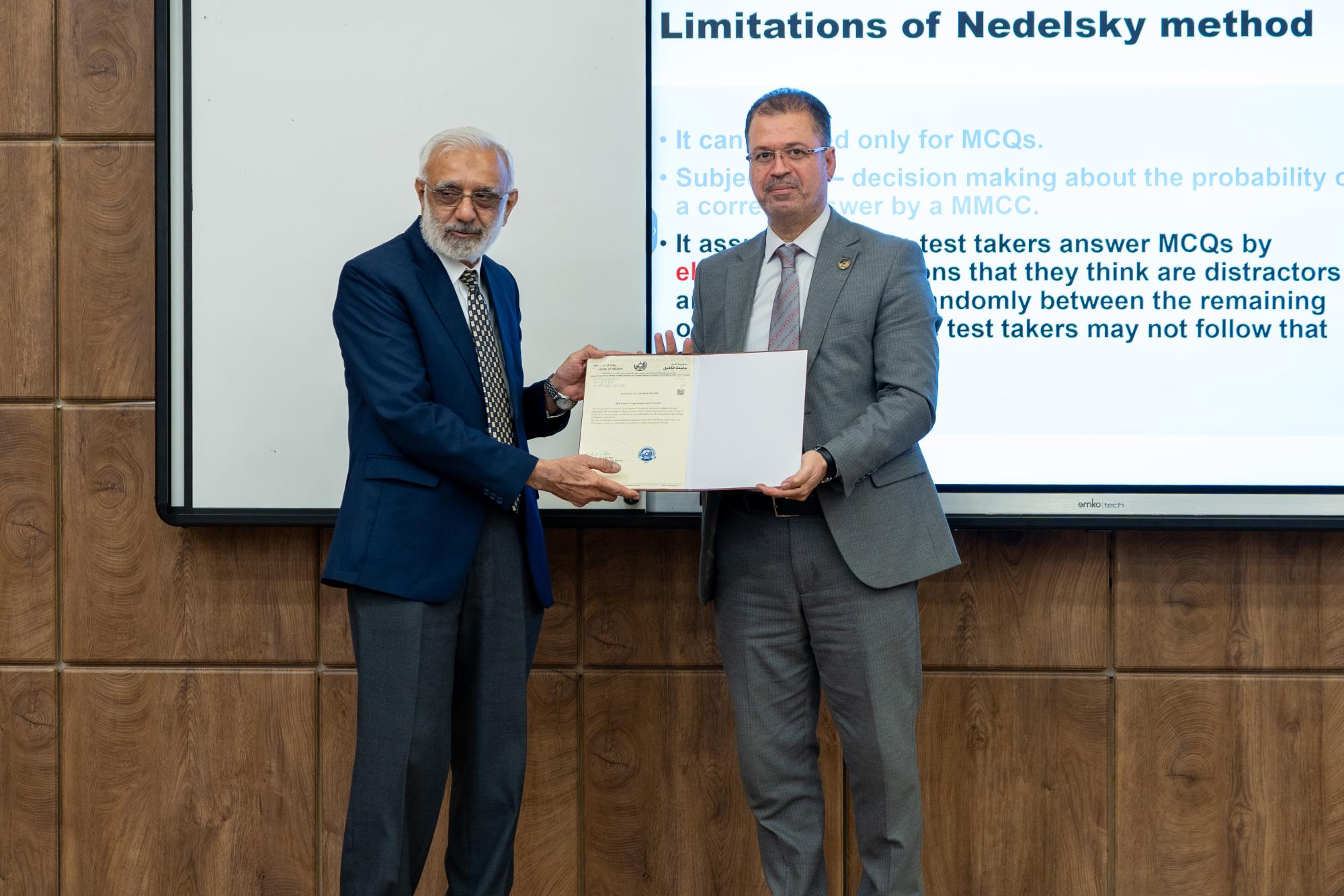 من جانبه أشار عميد الكلية الدكتور سامر مكي الحكاك، إلى أنّ استقبال الدكتور عالم بشير مالك، جاء بهدف الاستفادة من خبراته الدولية وتعزيز جودة التعليم الطبي في الجامعة.