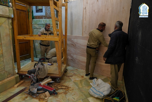 وحدة النجارة والألمنيوم تنفّذ أعمال نصب القواطع لتنظيم حركة الزائرين خلال الزيارة الرجبية