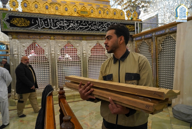 ضمن الاستعدادات الخدمية المتواصلة لاستقبال جموع الزائرين خلال الزيارة الرجبية المباركة، تأهّبت فرق وحدة النجارة والألمنيوم التابعة لشعبة الصيانة الكهروميكانيكية بتنفيذ حزمة من الأعمال الخدمية والفنية داخل أروقة الحرم الكاظمي الشريف كان في مقدمتها نصب القواطع الخشبية لتنظيم حركة الزائرين وضمان انسيابية الدخول والمغادرة، وتأتي هذه الإجراءات في إطار الجهود الرامية إلى تخفيف الزخم المتوقع خلال ساعات الذروة، ولا سيما في أوقات توافد الأعداد الكبيرة من الزائرين.