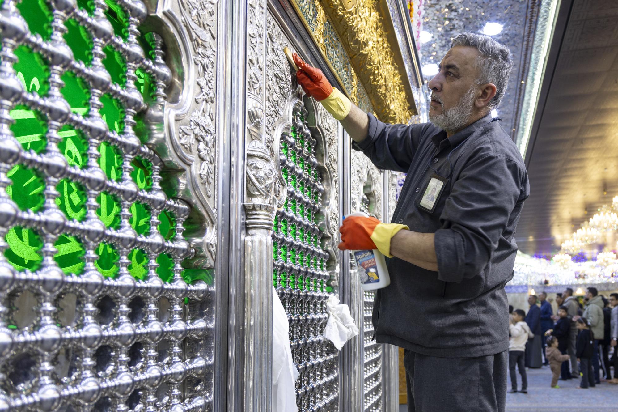 وأوضح الربيعي أنّ "أعمال التنظيف نُفذت بعناية ودقة مع مراعاة القيام بعملية الإدامة في الأوقات التي تشهد انخفاضًا نسبيًّا في أعداد الزائرين لتجنب إعاقة حركة الزائرين الوافدين لتأدية مراسم الزيارة والدعاء داخل المقام الشريف".