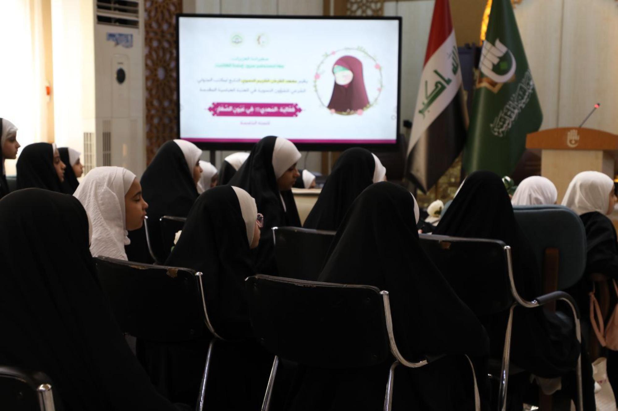 نظم معهد القرآن الكريم النسوي التابع لمكتب المتولي الشرعي للشؤون النسوية في العتبة العباسية المقدسة، فعالية (المهدي في عيون الصغار – السنوية الخامسة)، والموجهة للفتيات من الفئة العمرية (8–14) سنة. وقالت مسؤولة المعهد السيدة منار الجبوري: إنّ الفعالية شهدت حضور نحو 75 فتاة، وتضمنت مجموعة من الفقرات، منها عرض فيلم عن ولادة الإمام المهدي (عجّل الله فرجه الشريف). وأضافت أنّ البرنامج ضم فقرة الأسئلة والأجوبة، التي اشتملت على معلومات عن القرآن الكريم و الإمام المهدي المنتظر (عجّل الله فرجه) أسهمت في إثراء عقول المشارِكات، بأسلوب تربوي مبسط.