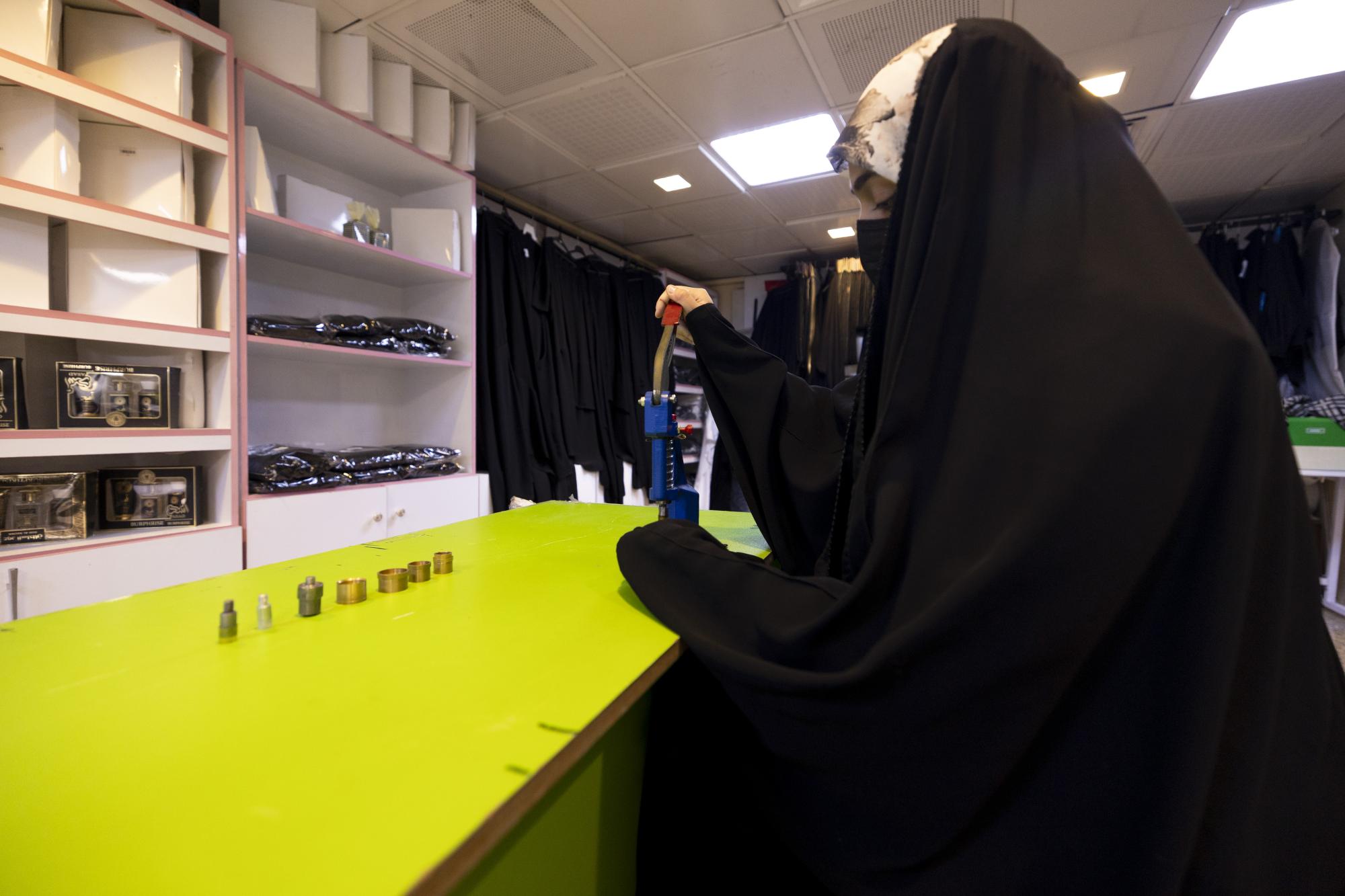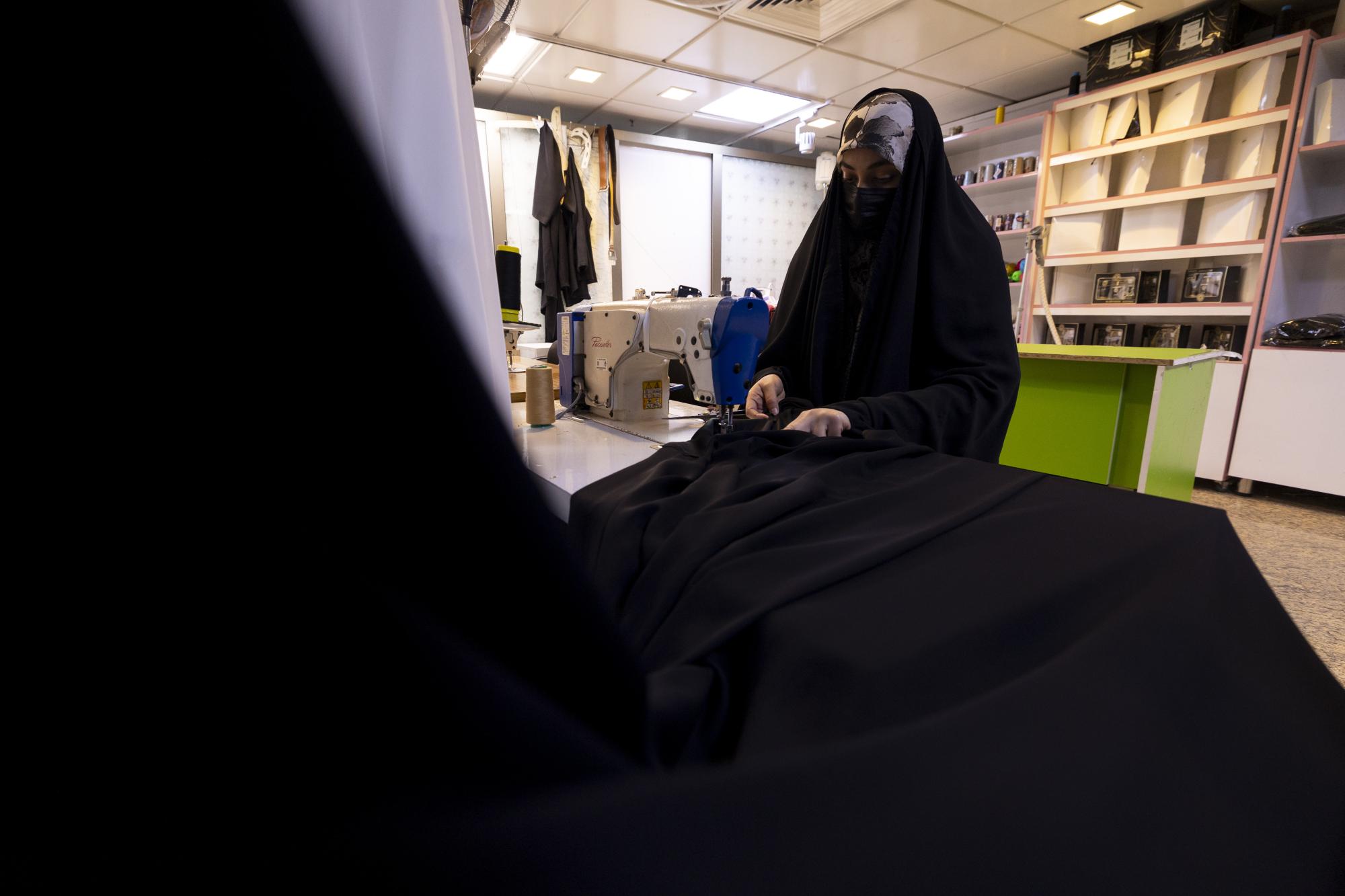 مجمع العفاف يباشر خياطة العباءات الخاصة بالمشاركات في حفل التكليف الشرعي