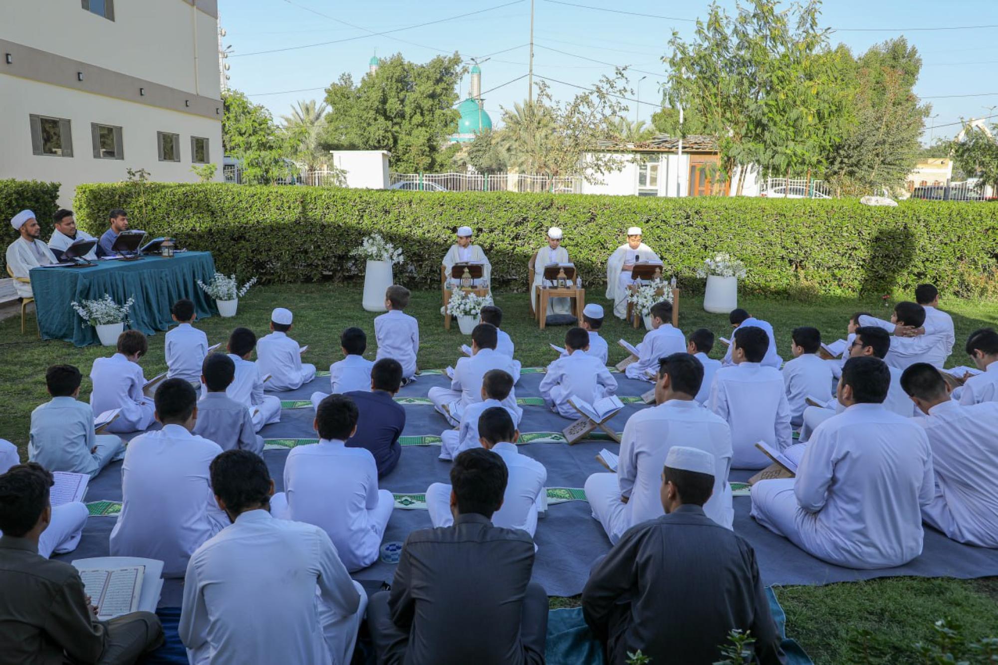 يواصل المَجمَعُ العلميّ للقرآن الكريم في العتبة العبّاسية المقدّسة إقامة مجلسه القرآني الرمضاني التعليمي، الخاص بطلبة الحفظ في معهد القرآن الكريم التابع للمَجمَع في النجف الأشرف. ويُقام المجلس بإشراف لجنةٍ تعليميّة متخصّصة تضمّ نخبةً من الأساتذة ذوي الخبرة، يتناوبون على تقديم المواد العلمية، ومتابعة أداء الطلبة وتقويمه ميدانيًا لضمان ترسيخ المهارات بشكلٍ عمليّ. ويتضمّن البرنامج فقراتٍ يوميّة تشمل: مادة النغم والصوت للارتقاء بجودة التلاوة وسلامة المخارج، وأحكام التلاوة لترسيخ قواعد التجويد تطبيقًا، إلى جانب الوقف والابتداء لضبط المعاني وتحقيق الانسجام في الأداء القرآنيّ.
