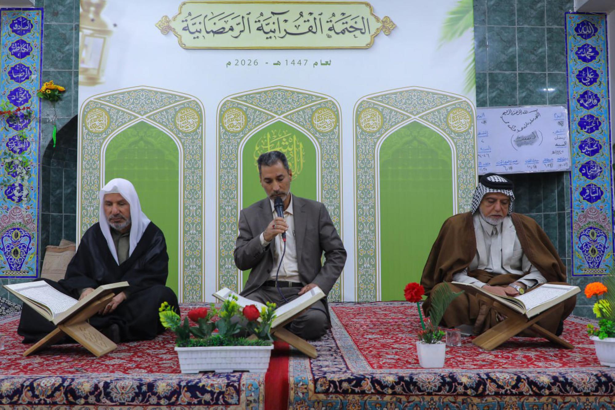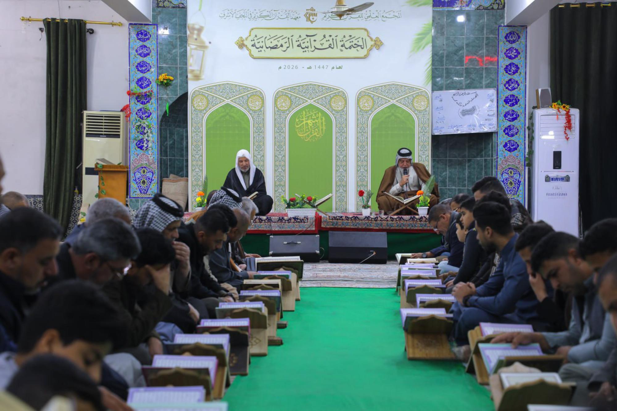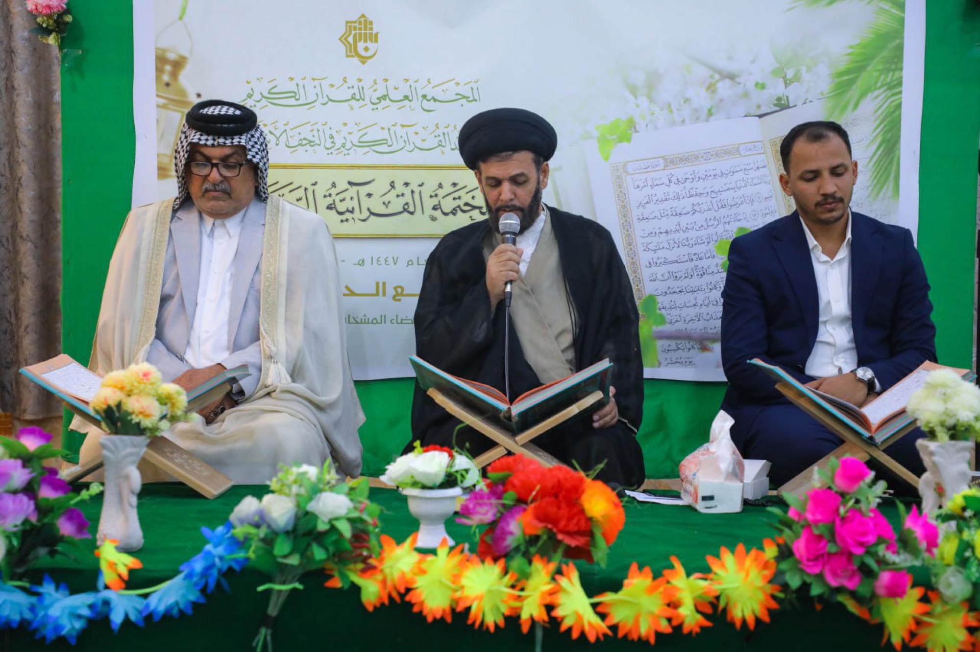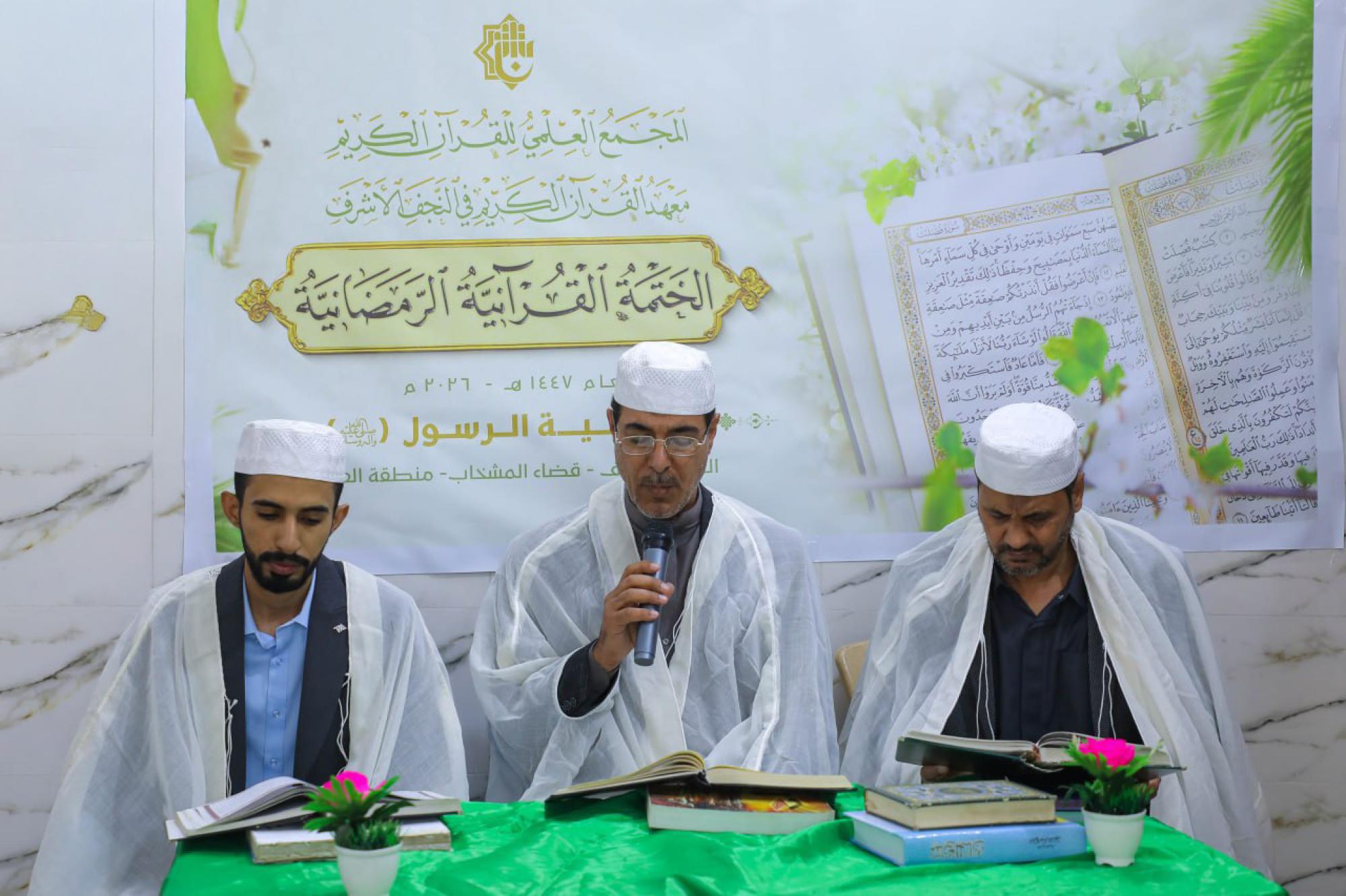 تتواصل في محافظة النجف الأشرف الختمات القرآنية الرمضانية التي يقيمها المجمع العلمي للقرآن الكريم في العتبة العباسية المقدسة، بمشاركة 60 قارئًا. وقال السيد محمد علي رشيد من معهد القرآن الكريم في النجف الأشرف التابع للمجمع: إنّ "المعهد يواصل إقامة الختمات القرآنية الرمضانية في مركز محافظة النجف الأشرف وعدد من الأقضية والنواحي التابعة لها بمشاركة 60 قارئًا". وأضاف أنّ "قضاء المشخاب يشهد إقامة 5 ختمات قرآنية يُتلى فيها جزء من القرآن الكريم يوميًّا طوال أيام شهر رمضان المبارك، إلى جانب تنظيم مسابقة قطوف القرآنية".